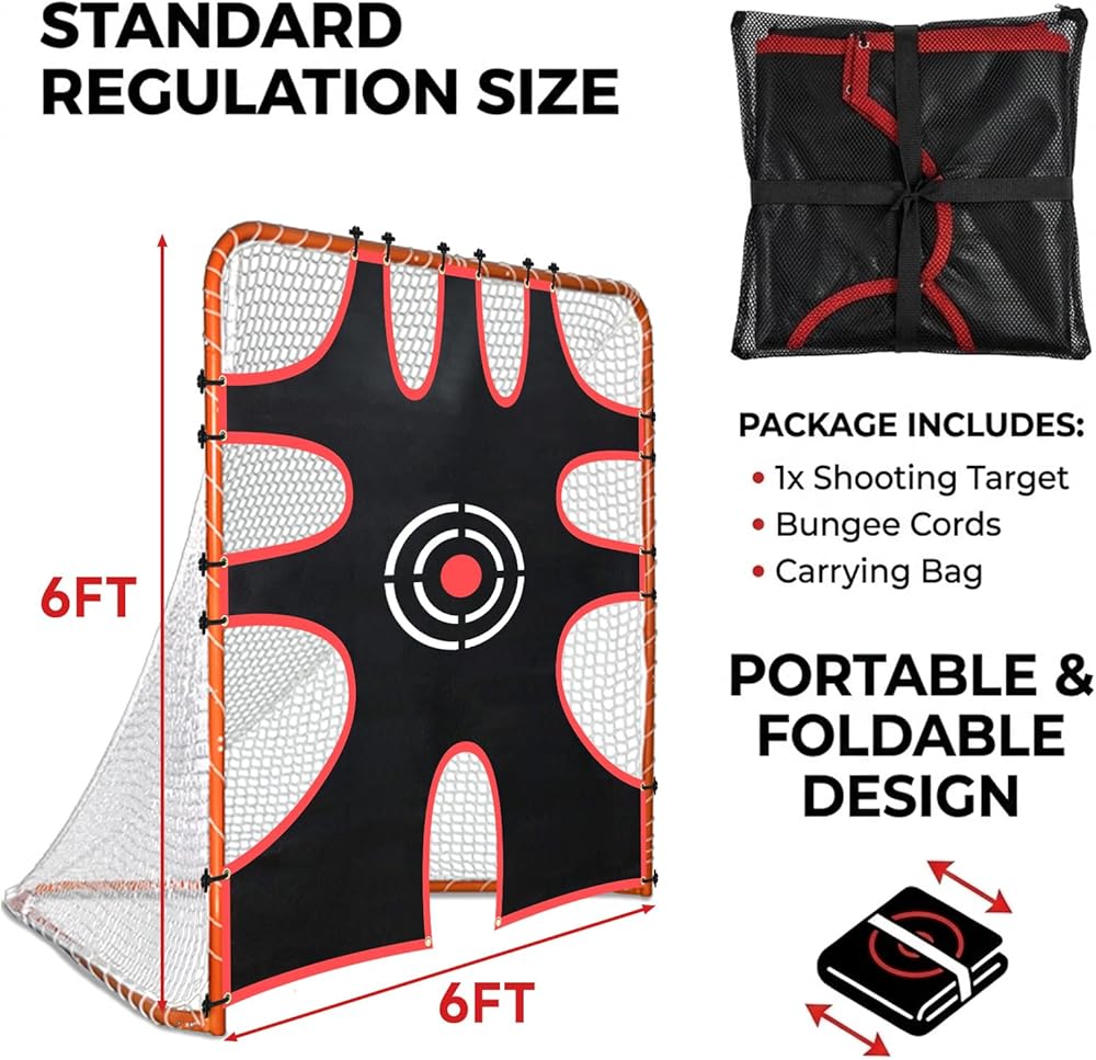 هدف إطلاق النار لاكروس - شبكة PVC عالية الدقة مقاس 6 × 6 أقدام مع 9 مناطق وحبال بنجي للتدريب في الفناء الخلفي - تصميم محمول قابل للطي، هدية للأولاد والبنات والشباب والمدربين