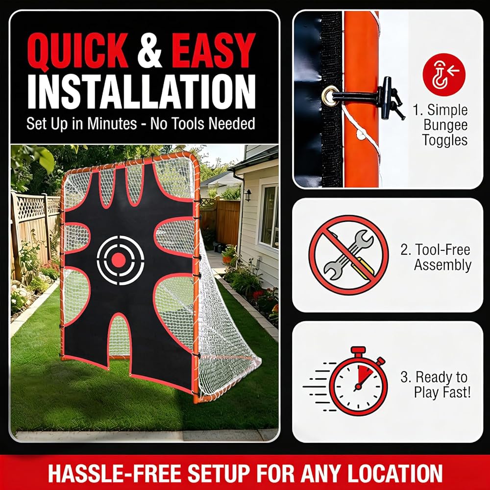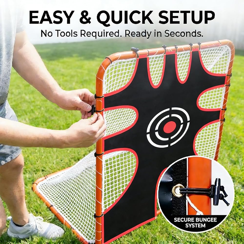 • TRAIN ANYWHERE, IN MINUTES: Turn any space into your practice zone. Simply attach the target to a standard lacrosse goal, a backyard fence, or a garage wall using the included bungees. It sets up in under a minute for convenient training in the park, driveway, or backyard.