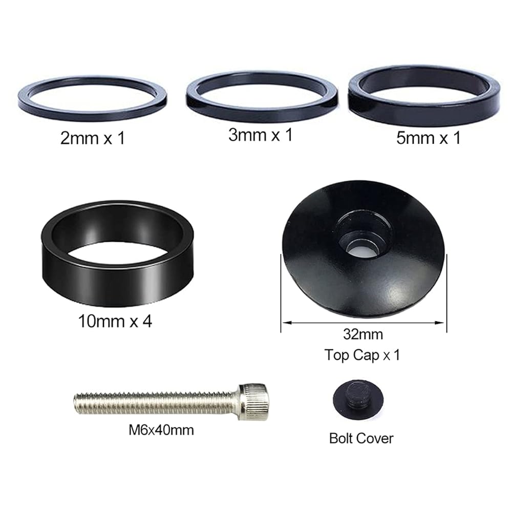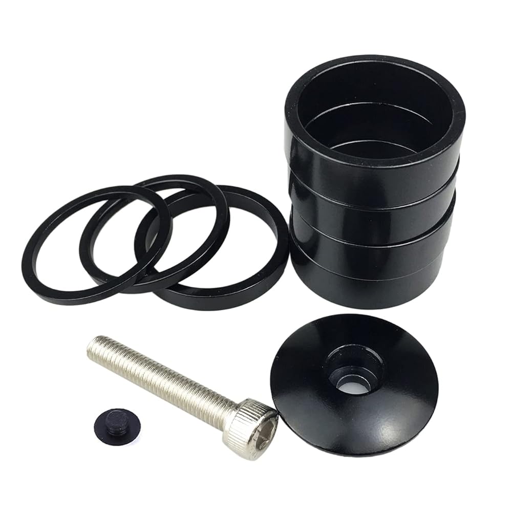 بلات دراجة سماعة فاصل 7 قطع سبائك الألومنيوم MTB الطريق دراجة الجذعية سماعة فاصل صالح 1 1/8 بوصة الجذعية 2/3/5 /10 مللي متر (أسود) (أسود 7 قطع + غطاء علوي)