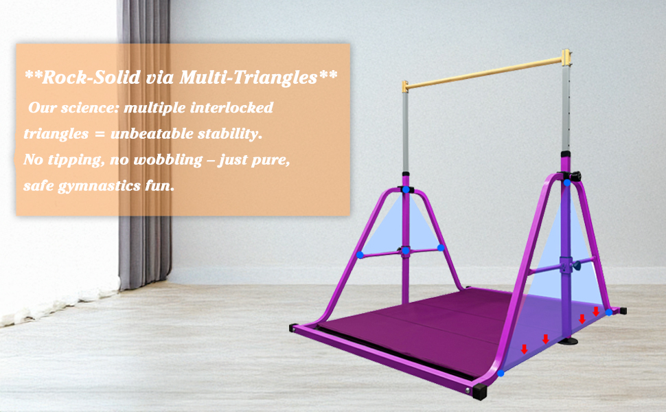 this gymnastic equipment is suitable for most at home-skills.Your kids can enjoy primary gymnastics training in home