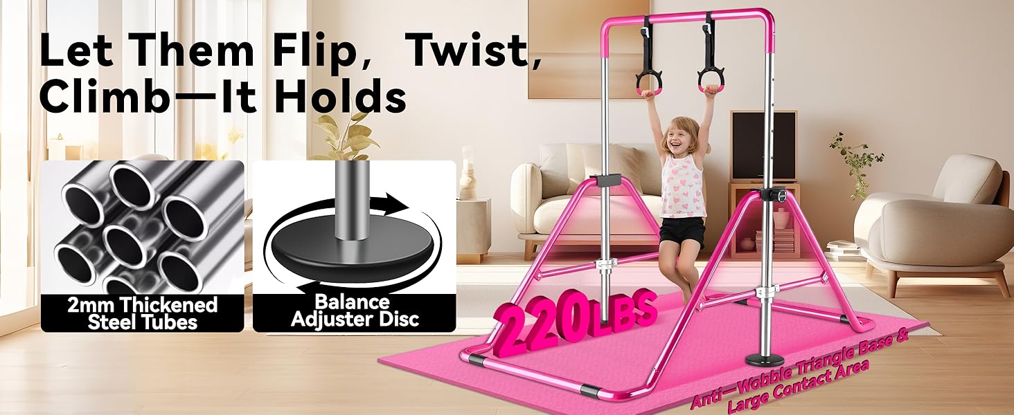 Easy to Assemble: This gymnastics equipment for kids is designed for quick and easy assembly. Simply connect the bars, and the setup can be completed in about 10 minutes, saving time and effort for parents