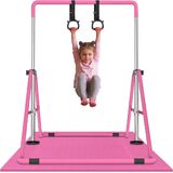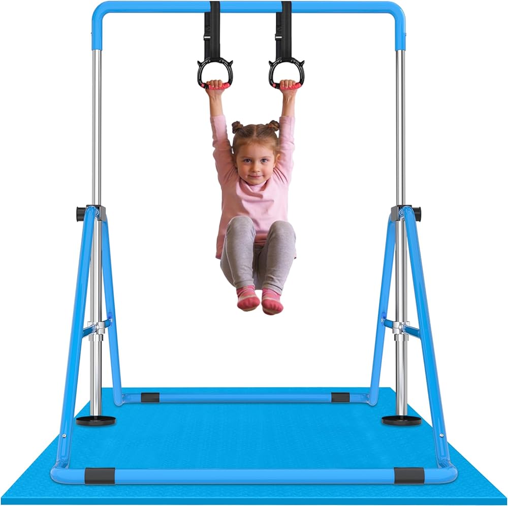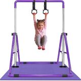Provide Gymnastics Rings and Mats: This gymnastics bar for kids set includes a pair of gymnastic rings and a training mat to add variety and fun to daily practice. The rings and mat can also be used separately, making this gymnastics bar an excellent gift for toddlers and children