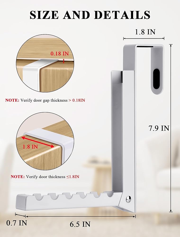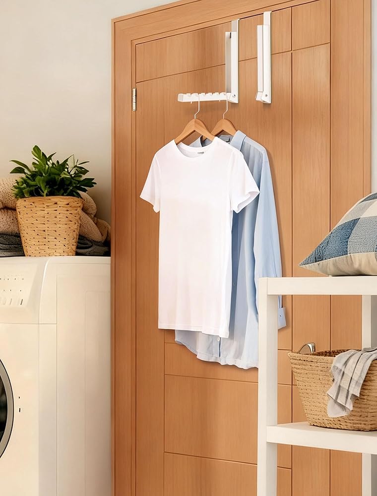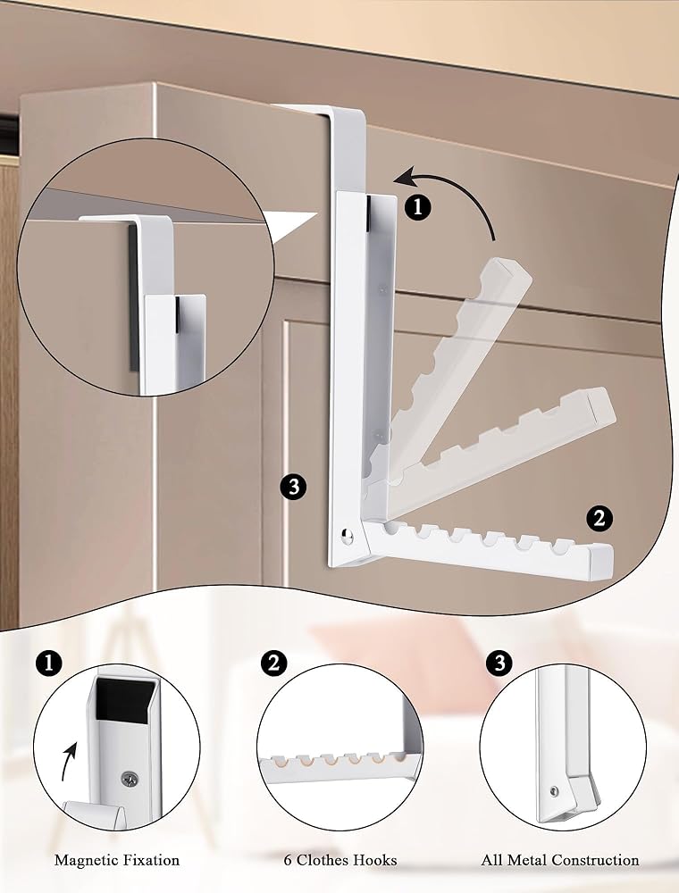 • 【رف تجفيف الملابس القابل للطي】: تتميز رفوف تجفيف Merdttes المكونة من قطعتين فوق الباب بتصميم قابل للطي لتوفير المساحة. تأتي رفوف الأبواب القابلة للطي مع وسادات إضافية مضادة للانزلاق، مما يتيح تعديلًا مجانيًا لعرض الخطاف (بحد أقصى 1.8 بوصة) لمعظم أحجام الأبواب المنزلية الأمريكية. مثالية للسفر أو تعليق الملابس في الأماكن الصغيرة - غرف غسيل الشقق، والمساكن - حيث لا يوجد رف للملابس.