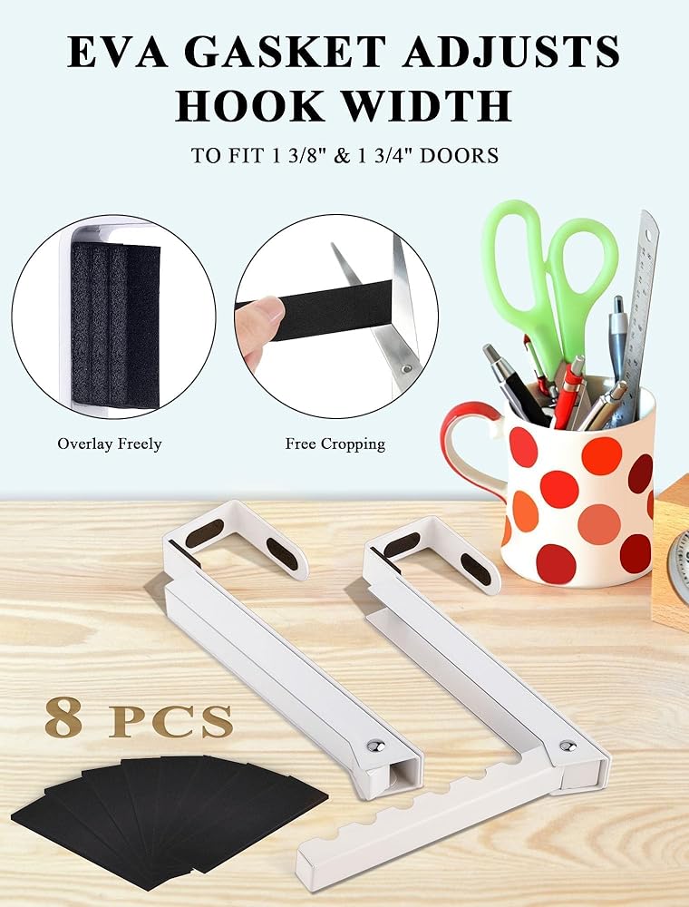 • 【عرض الخطاف قابل للتعديل بحرية】: تشتمل هذه الشماعة الموجودة على الباب على وسادات EVA فائقة النعومة مع مادة لاصقة. يمكنك لصق هذه الوسادات على الخطافات أو الباب عندما تحتاج إلى ضبط فجوة باب الخطاف، مما يحل الخطافات السائبة، ويناسب الأبواب ذات السُمك المختلفة، ويحمي بابك أيضًا من الخدوش. Merdttes: مُغيِّر قواعد اللعبة وملتزم بالتحسين المستمر والابتكار.