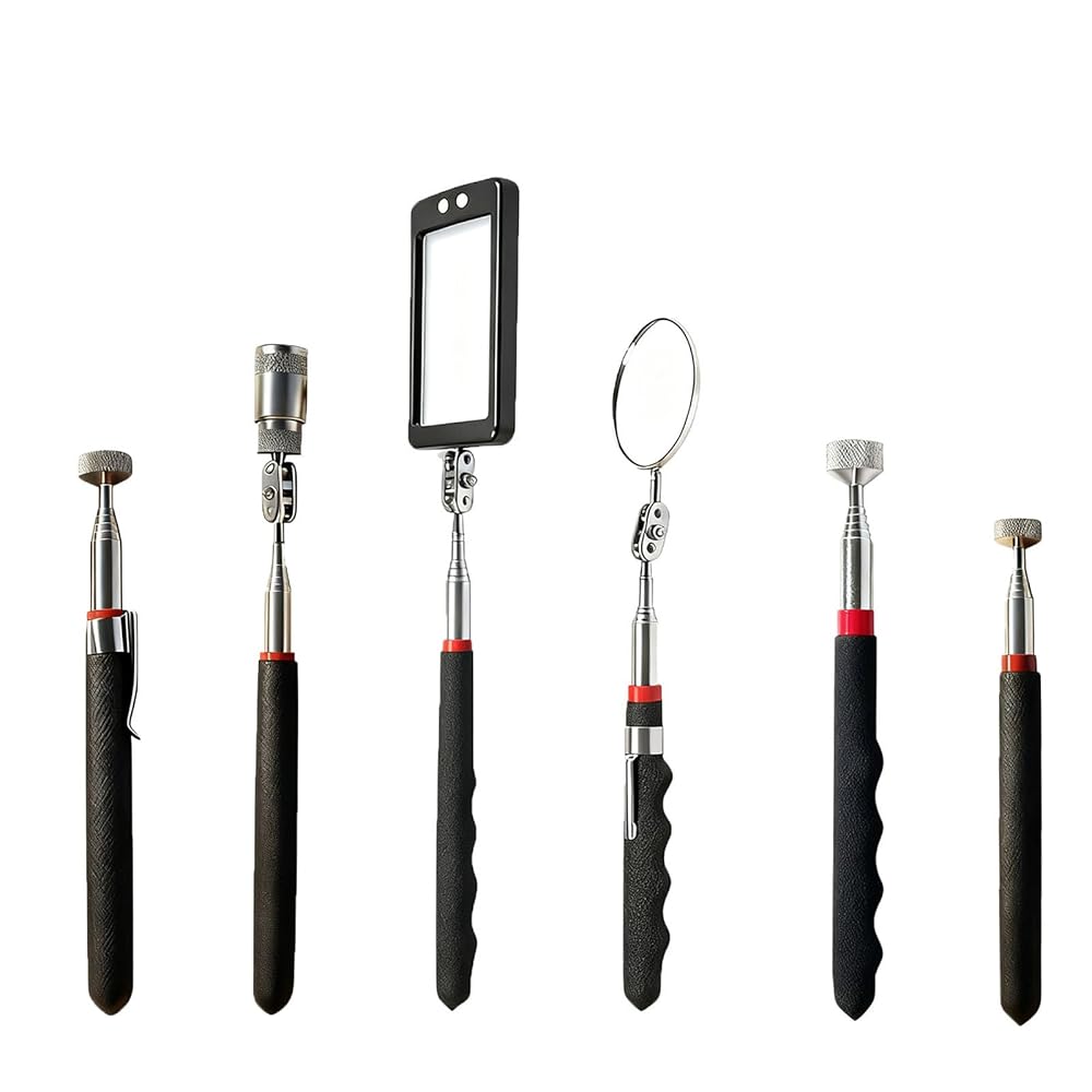 【تخزين محمول】عند عدم الاستخدام، ما عليك سوى سحب المقبض بالكامل لتحويل مرآة الفحص على الفور إلى أداة مدمجة وخفيفة الوزن يمكن وضعها بسهولة في صناديق الأدوات أو حقائب الظهر أو حتى الجيوب. سواء كنت تحمله إلى مواقع الإصلاح أو تخزنه في المنزل لاستخدامه في المستقبل، فإنه يوفر راحة لا مثيل لها.