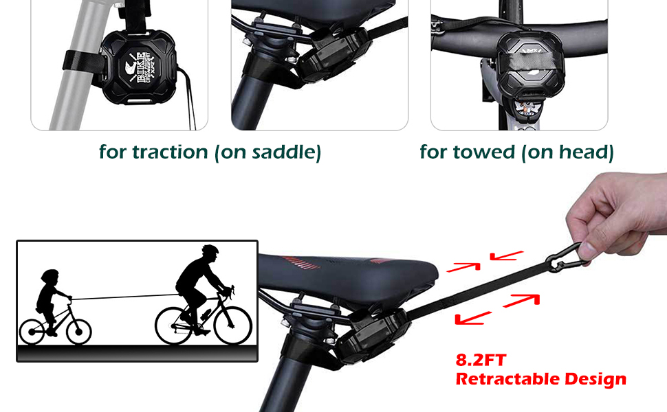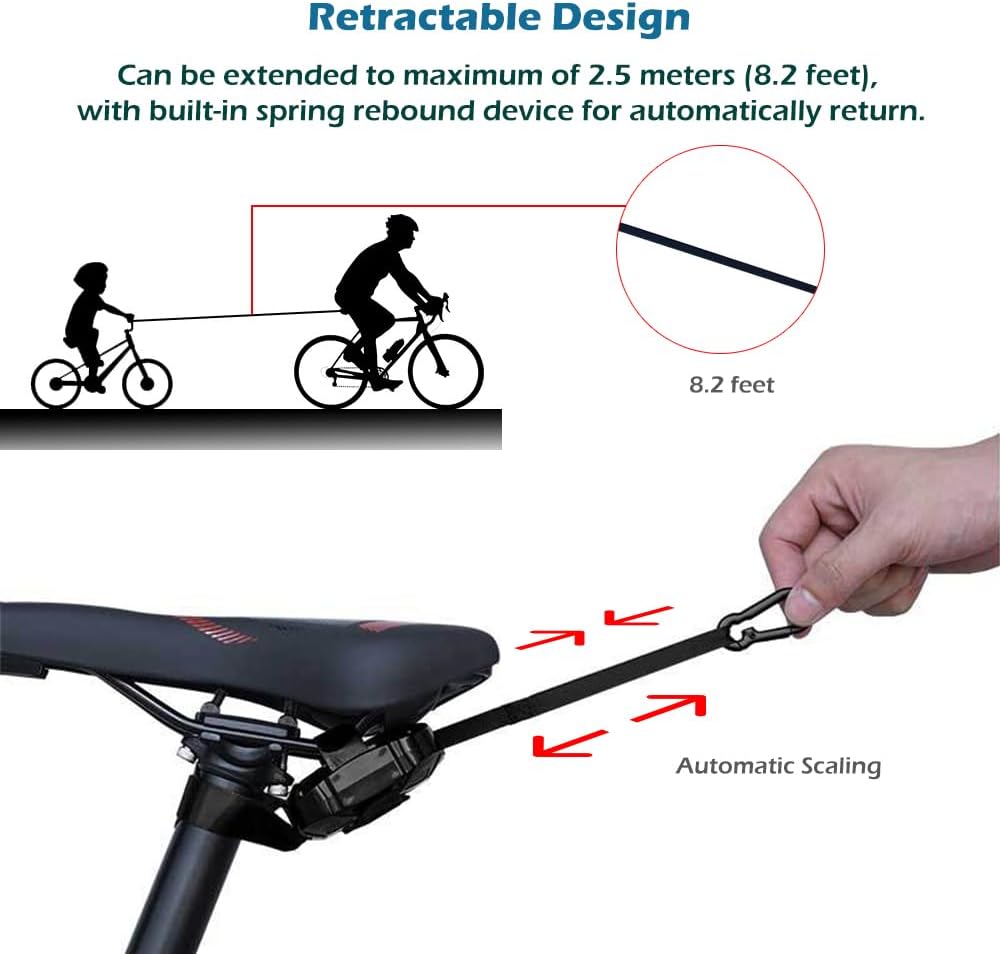 [ثابت وموثوق] حبل سحب الدراجة مصنوع من مادة مركبة من النايلون، مقاوم للاهتراء، قوي، يمكنه تحمل وزن يصل إلى 100 كجم تقريبًا، ويوفر اتصالاً آمنًا وموثوقًا، وله عمر خدمة طويل.