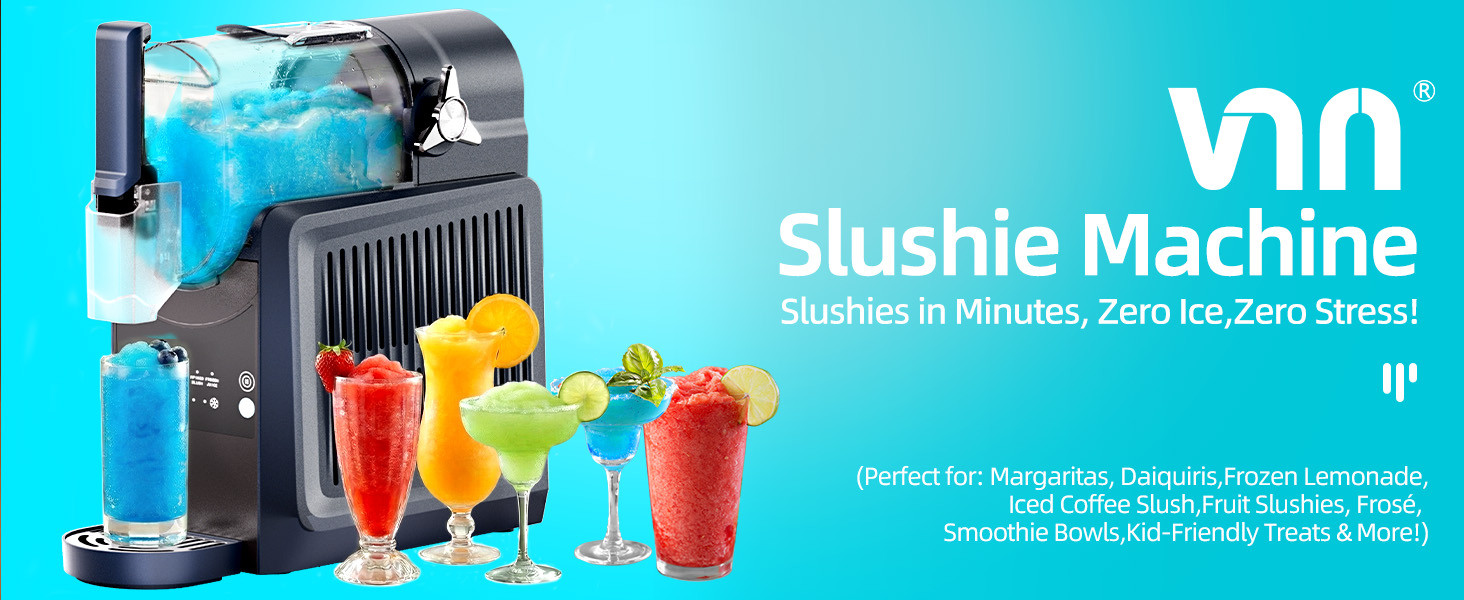 ماكينة سلاشي من VNN - ماكينة سلاشي بسعة 92 أونصة للمنزل لا تحتاج إلى ثلج، ماكينة مشروبات مجمدة وسلاشي، 5 برامج معدة مسبقًا، تنظيف تلقائي، مناسبة للمارجريتا والعصائر والميلك شيك باللون الأزرق