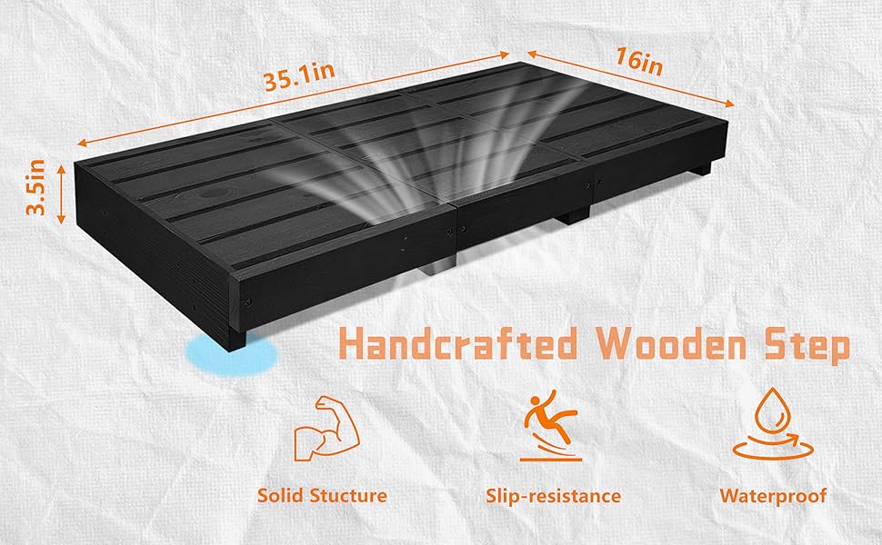 【ميزات أمان لا مثيل لها】تم تصميم سطح مقعد الخطوات الخاص بنا بأخاديد لتعزيز الإمساك ومنع الانزلاق، مما يوفر منصة آمنة. تسمح هذه الأخاديد أيضًا بالتهوية ومنع تراكم المياه والحفاظ على سطح جاف وآمن. بالإضافة إلى ذلك، فإن الجزء السفلي من الدرجة مجهز بوسادات مضادة للانزلاق لضمان الثبات ومنع الانزلاق العرضي، مما يوفر راحة البال مع كل استخدام.