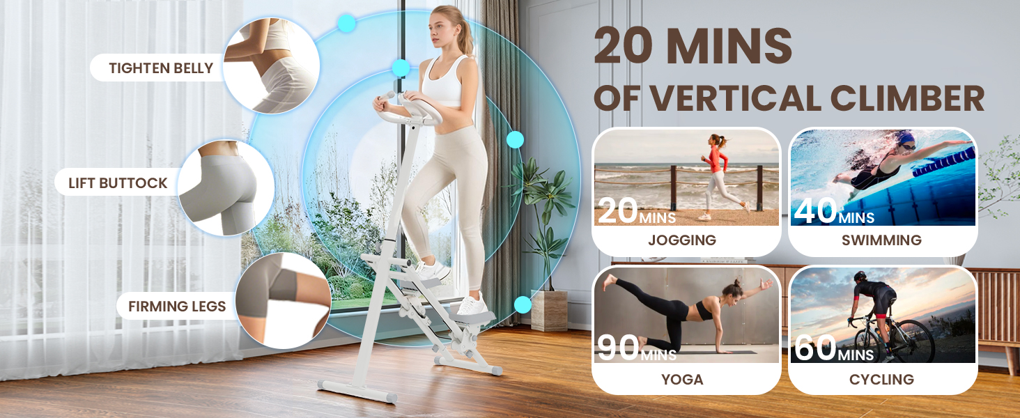 3 Handlebar Heights & 3 Pedal Angles for Full-Body Workout: The stair climber offers 3 handle height options—48IN, 50IN, and 52IN, 3 pedal inclines 10°, 0°, and -10°This lets you precisely and quickly sculpt your glutes and legs while enhancing full-body fat-burning efficiency.