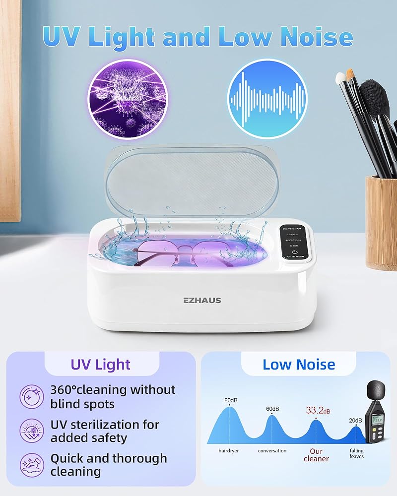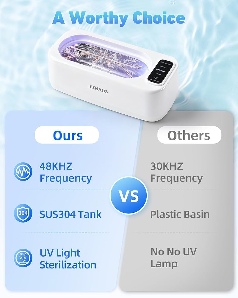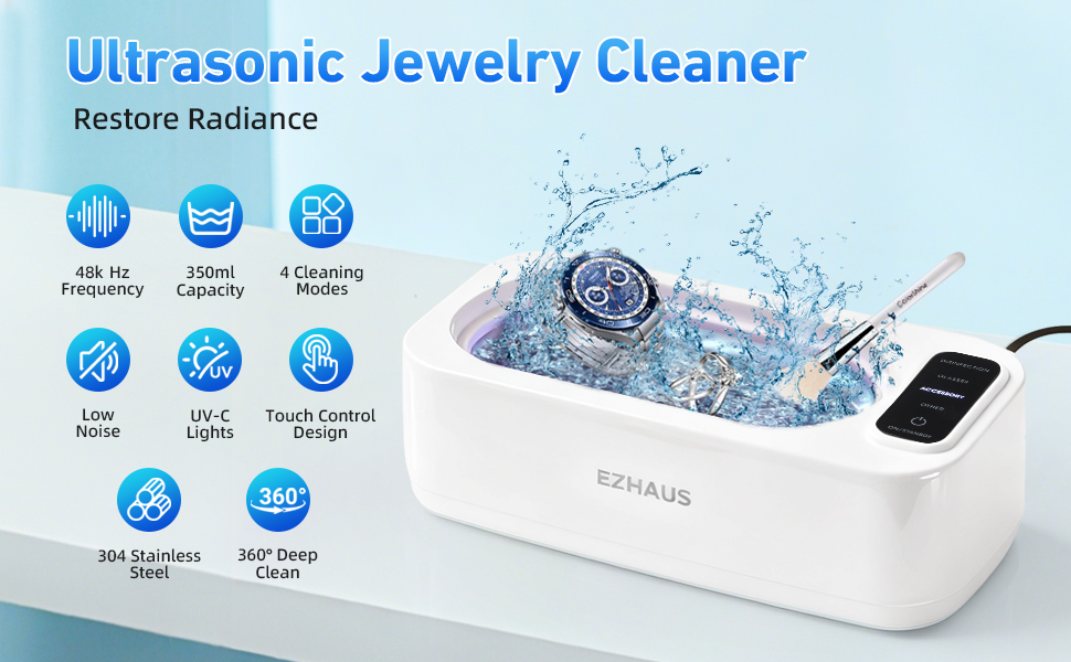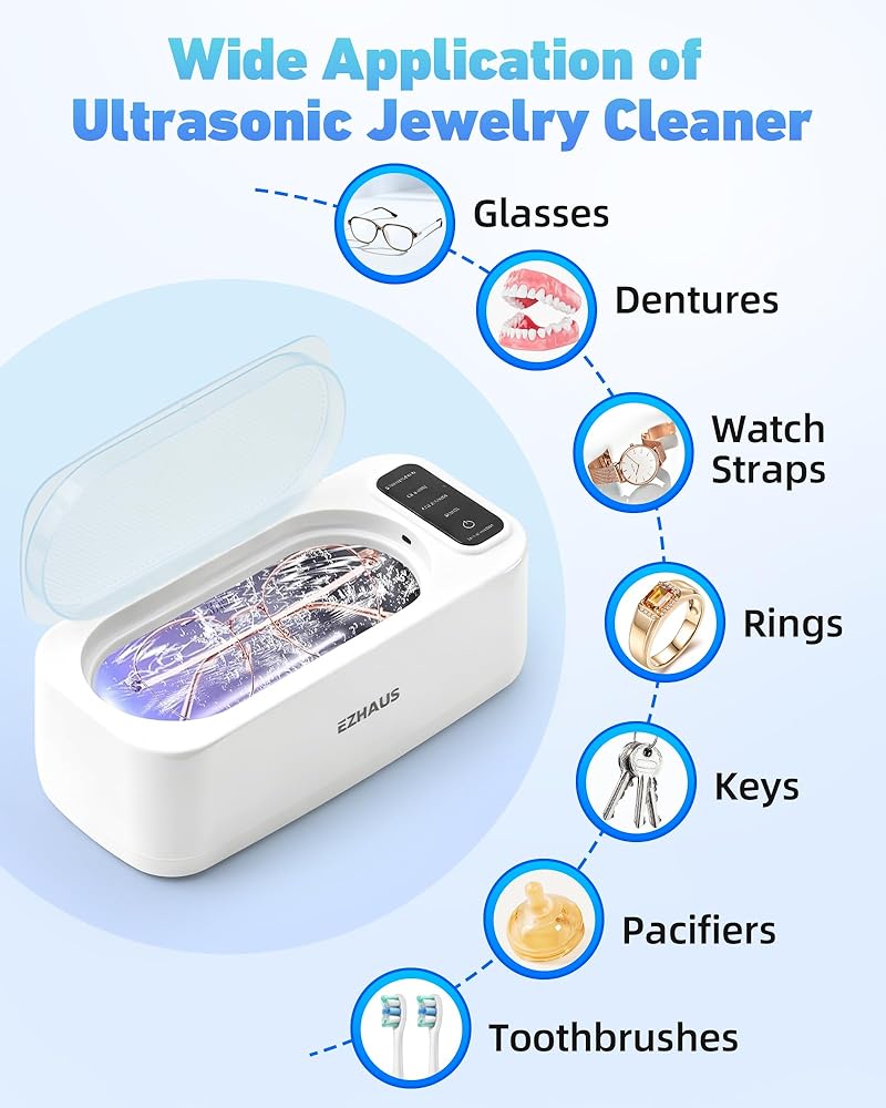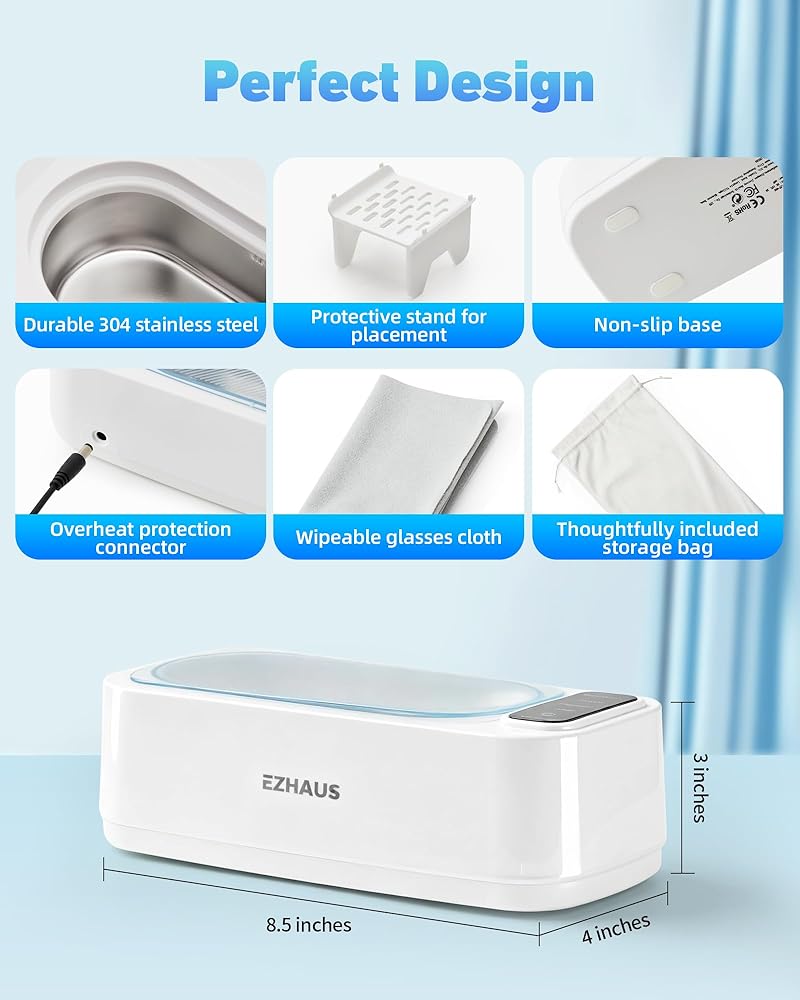 [التنظيف بالموجات فوق الصوتية 48 كيلو هرتز]: يستخدم منظف المجوهرات بالموجات فوق الصوتية هذا موجات عالية التردد 48000 هرتز ومحرك قوي 30 واط. تعمل الاهتزازات عالية التردد على فصل الهواء والماء، مما يشكل فقاعات دقيقة تزيل البقع السطحية. (ملاحظة: لا يزيل الصدأ.)