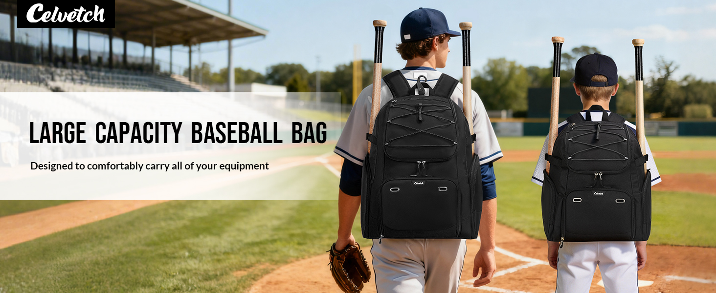حقيبة بيسبول ذات سعة كبيرة: حقيبة ظهر البيسبول بقياس 16.5 بوصة طول × 10.5 بوصة عرض × 21 بوصة ارتفاع بسعة 58.5 لتر، يمكنها بسهولة حمل جميع ملحقات ومعدات البيسبول الخاصة بك بما في ذلك 4 مضارب، وقفازين، ومرابط، وخوذة، وقناع الوجه، والملابس. مناسبة جدًا للتدريب والبطولات والرحلات الليلية.