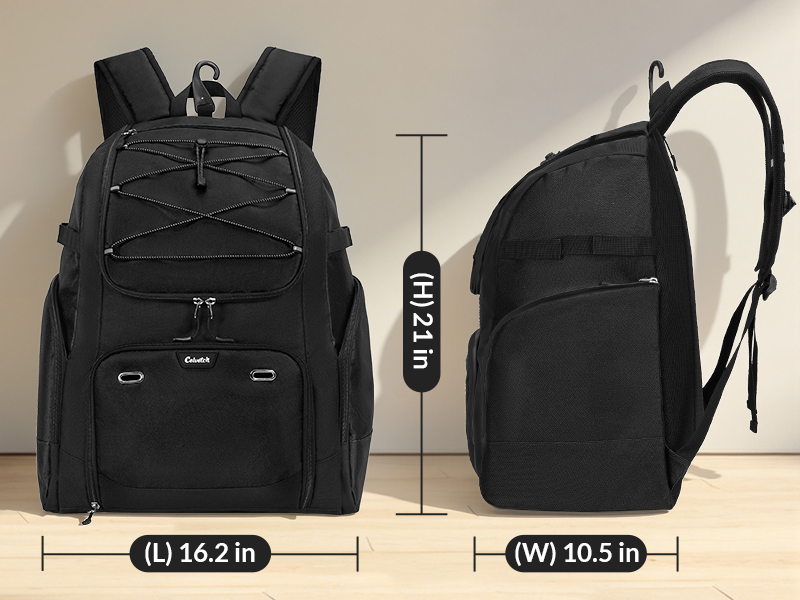 جيوب متعددة الوظائف: تتميز حقيبة ظهر البيسبول بجيب رئيسي واحد مع جيب شبكي داخلي لمعدات البيسبول الخاصة بك، وجيب واحد كبير منفصل للأحذية مع فتحات تهوية (يمكن أن تناسب الأحذية كبيرة الحجم بسهولة)، وجيب علوي بسحاب للهواتف والمحافظ، وجيب جانبي بسحاب للنظارات الشمسية والوجبات الخفيفة، وجيب جانبي مقاوم للماء من مادة PEVA للمشروبات الباردة وأدوات النظافة.