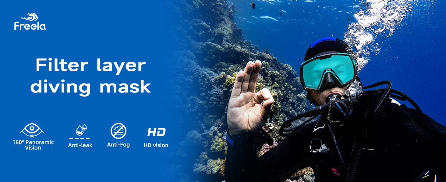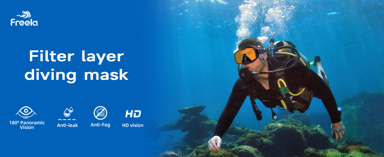 180°Wide-Angle View with UV Protective Filter Layer: Explore the depths with a mask engineered for maximum underwater visibility. The wide-angle design provides a breathtaking panoramic view of your surroundings. The UV protevtion filter layer actively balances light conditions, optimizing contrast for consistently clear and true vision. Whether you're a passionate snorkeler or an experienced scuba diver, this mask transforms every underwater adventure into a safe and immersive exploration.