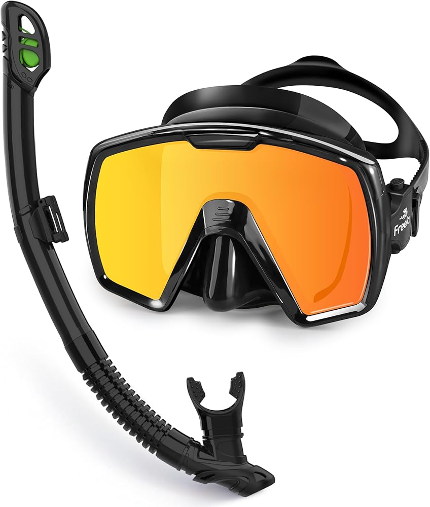 Mirrored Lens&Safety Tempered Glass: Freela snorke set offers mirrored lens choices, enhance visual contrast in bright conditions, and deliver a stylish look. The mask features thickened tempered glass lenses, designed to withstand deep water pressure and provide superior impact and scratch resistance. Our tempered glass prevents vision distortion, delivering true underwater clarity. The advanced safety film further enhances lens durability.To provide users with a better experience.