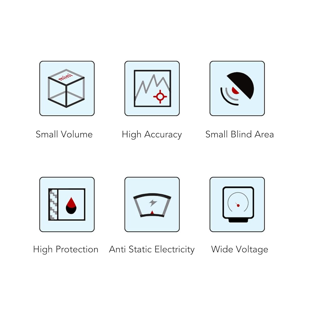 • SENSOR ADVANTAGE: The ultrasonic underwater ranging sensor has the advantages of compact size, small blind spot (minimum 2cm), and high accuracy.