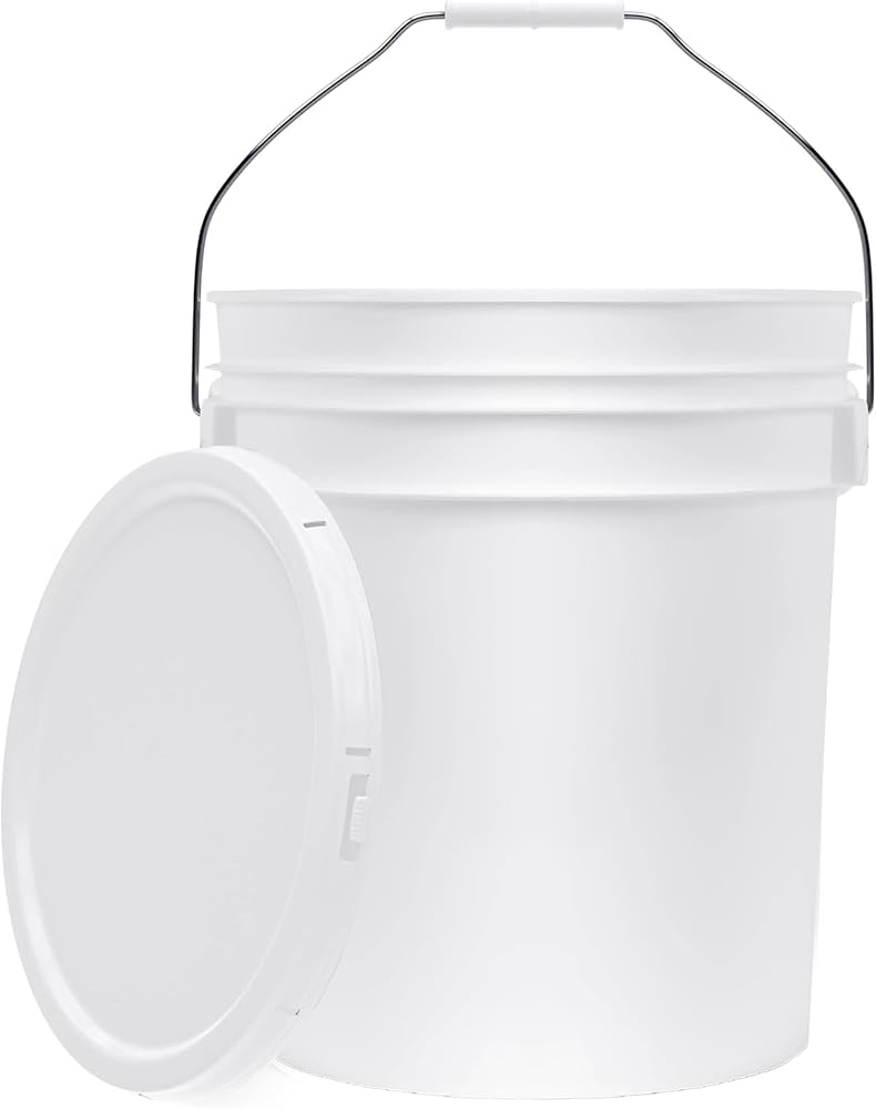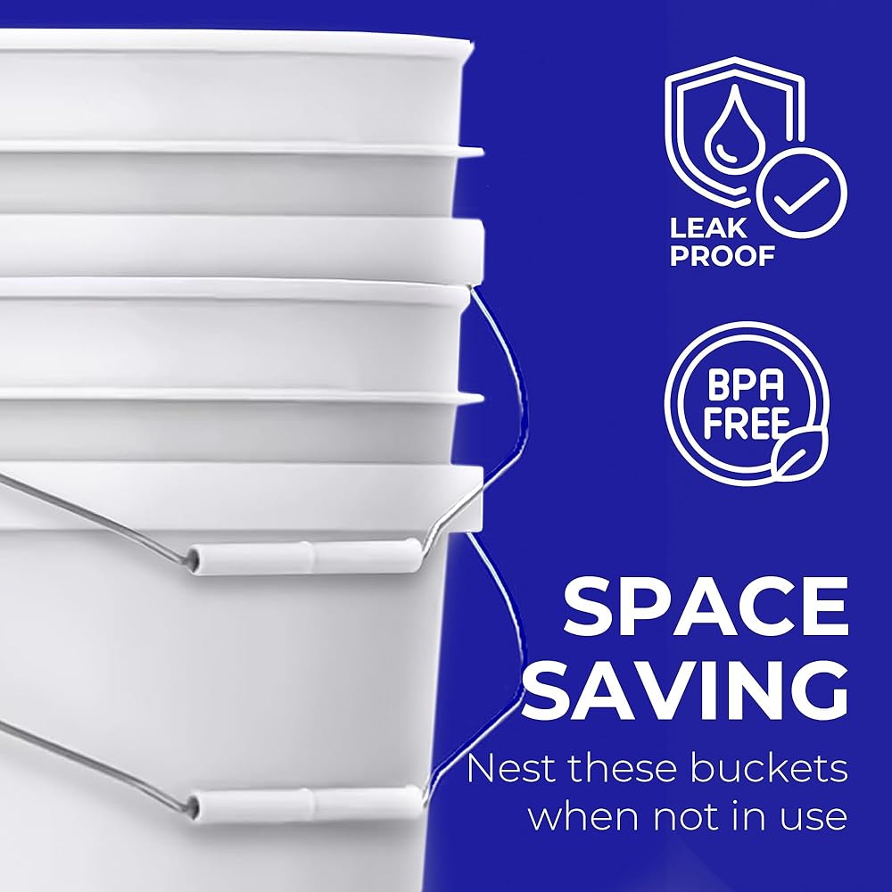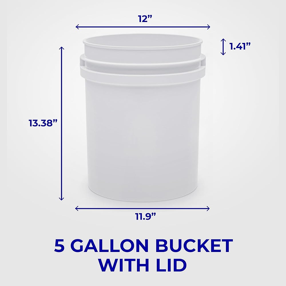 حاوية دلو بيضاء سعة 5 جالون مع غطاء | درجة الغذاء | شديدة التحمل 90MIL متينة للغاية | مقابض معدنية مع قبضة بلاستيكية لسهولة الحمل | متعدد الاستخدام | من السهل المكدس والتخزين | خالية من مادة BPA - عبوة واحدة