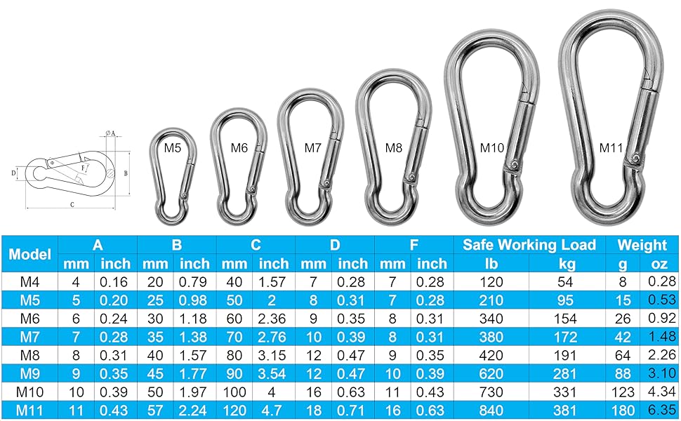 • ضمان الرضا: تحتوي كل مجموعة على 12 حلقة تسلق فاخرة من الفولاذ المقاوم للصدأ 304 (الحجم: M5)، مدعومة بضمان خالٍ من المتاعب لمدة عام.