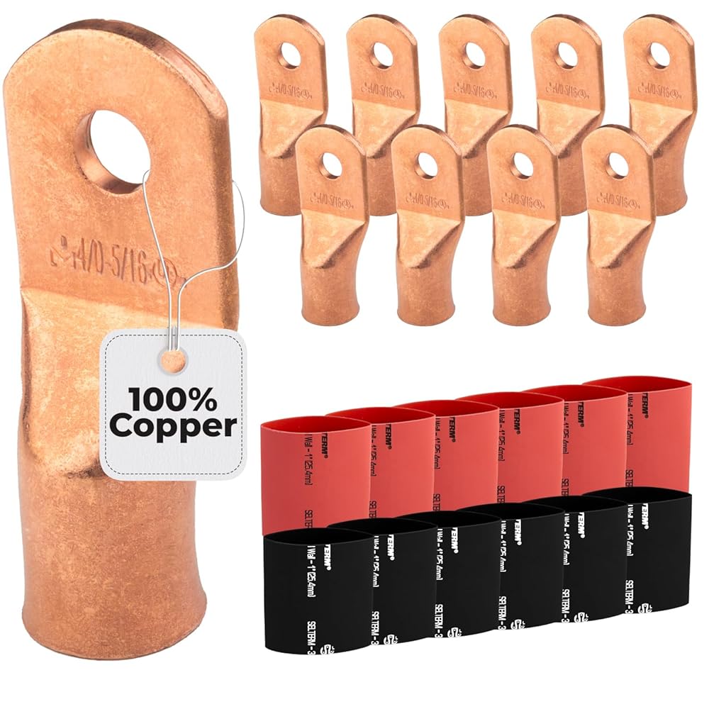 تحتوي العبوة على: تتضمن كل عملية شراء 10 قطع 4/0 AWG - 5/16 بوصة موصلات طرفية للبطارية، بالإضافة إلى 12 قطعة 3: 1 أنبوب انكماش حراري باللونين الأسود والأحمر مع مادة لاصقة؛ توفر هذه المجموعة الشاملة جميع الأساسيات للحفاظ على اتصالات البطارية الفعالة والدائمة