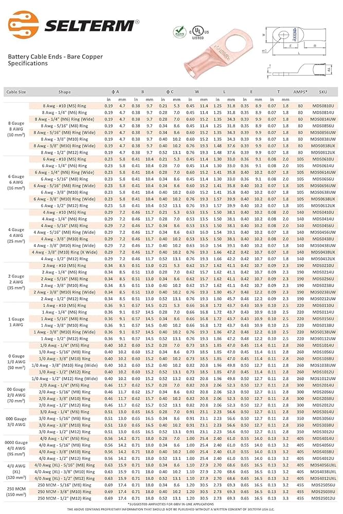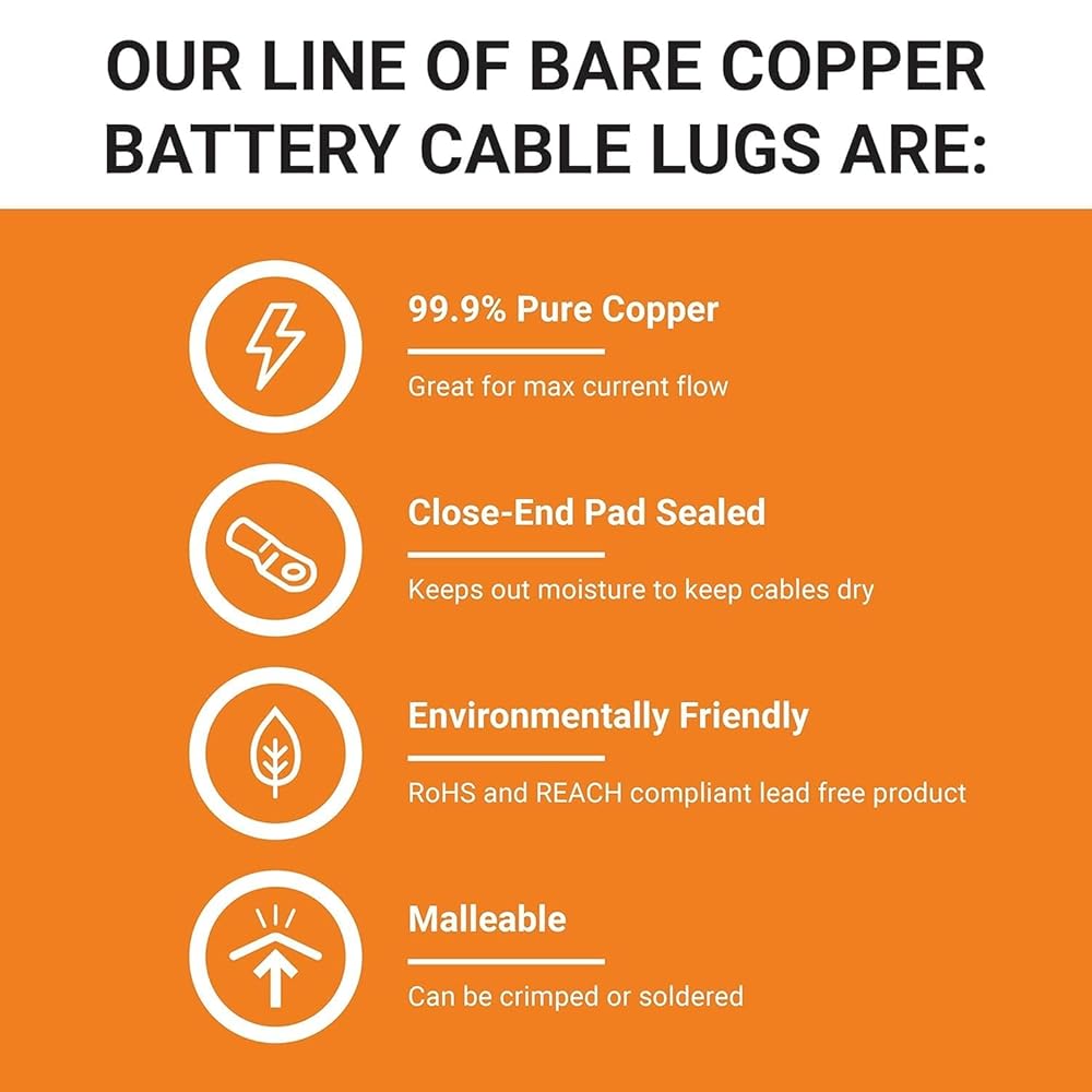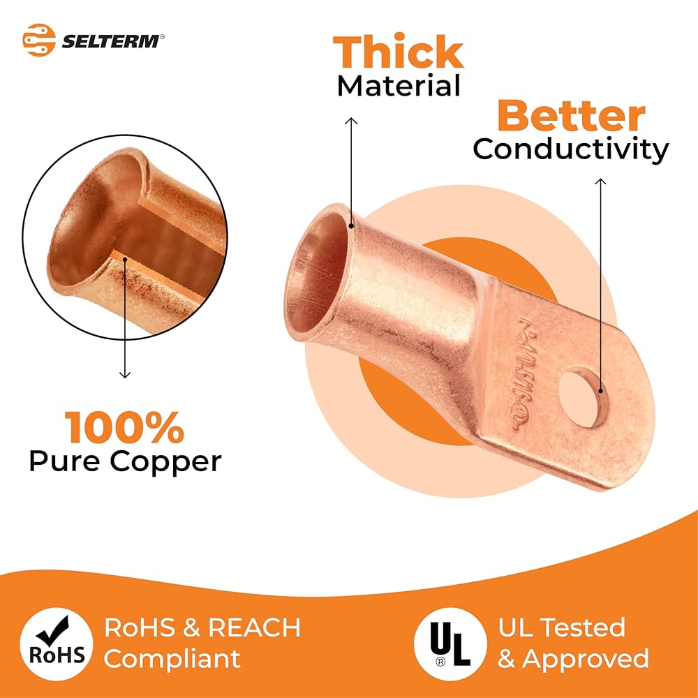 اتصالات آمنة وموثوقة: ضمان اتصالات بطارية قوية وموثوقة مع موصلات طرفية حلقية Selterm 4/0 AWG؛ تم تصميم هذه العروات لتوفير رابط قوي بين كابلات البطارية وأطرافها، مما يمنع فقدان الطاقة وانخفاض الجهد الكهربي