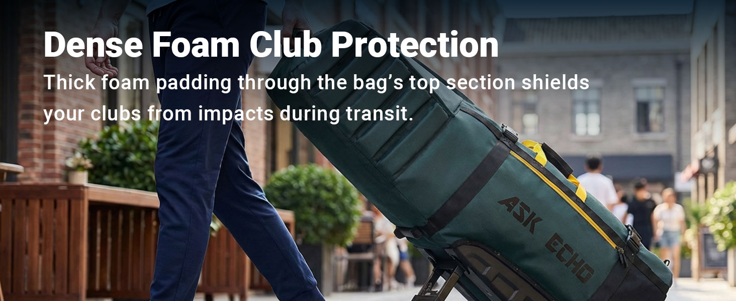 Airline-Ready & All-Weather Protection: Constructed with heavy-duty 1680D ballistic polyester, 13mm EPE foam padding, and a water-resistant coating to safeguard clubs against rain, moisture, and rough airport handling