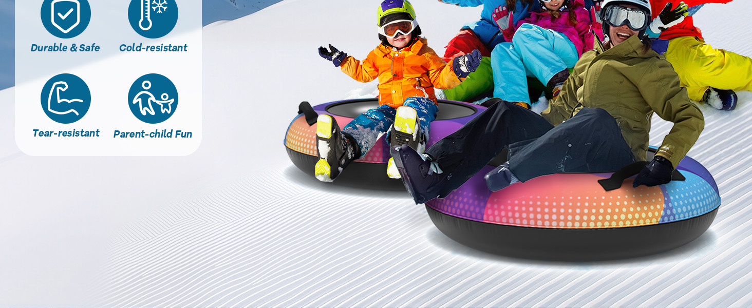 • [حزام سحب قابل للفصل وقاعدة ناعمة] مصممة للانزلاق دون مجهود، تتميز زلاجة الثلج القابلة للنفخ هذه بقاعدة مطلية لركوب سريع وسلس وإثارة مثيرة على المنحدرات. مع حبل سحب يدوي إسفنجي قابل للفصل، يتيح لك سحب أنبوب الثلج للخلف إلى أعلى التل دون عناء. استمتع بتجربة التزلج الشتوية المثالية!