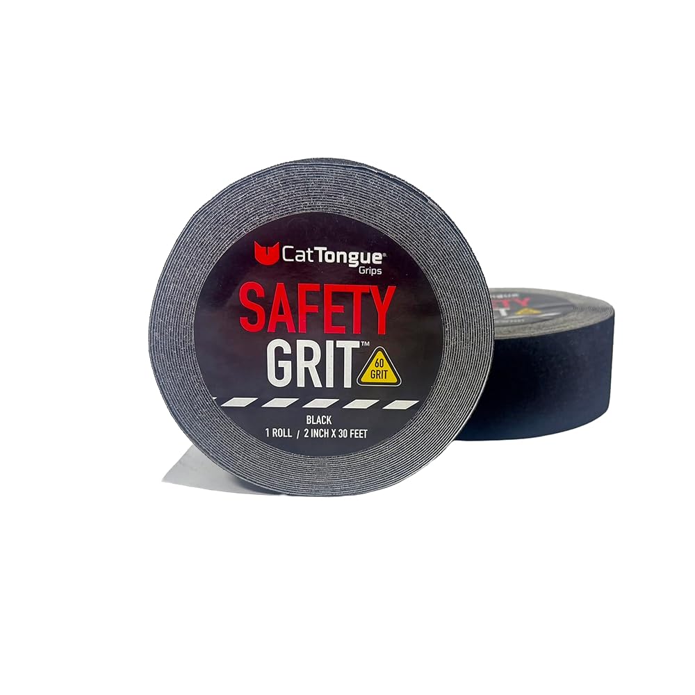 CatTongue Safety Grit Tape is designed to provide maximum grip with its durable 60-grit abrasive surface—perfect for ramps, walkways, and stairs. Built for demanding environments, this traction tape offers slip prevention and durability for both residential and industrial use. This waterproof adhesive tape is easy to cut and apply, sticking firmly to wood, concrete, metal, and more. Engineered to withstand the elements and heavy foot traffic, making it ideal for both indoor and outdoor applications. Whether for entryways, workstations, or vehicles, this long-lasting non-slip, strong adhesive tape promotes safety where it matters most. Just cut, peel, stick, and enjoy slip-free protection. If you're not happy with its performance, let us know and we'll make it right!