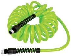 Features. Features an impact resistant strain relief and spiral bend restrictors for more flexibility, ergonomics and extends the life of the hose.. Extreme All-Weather Flexibility.. Superior chemical resistance.. Better recoil memory.. Reusable hose ends-field repairable in seconds.. Lightweight anodized aircraft aluminum fittings with pre-applied tread sealer