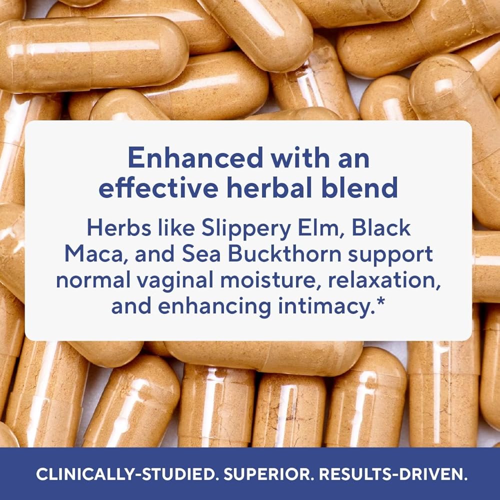جفاف المهبل والوظيفة الجنسية والعلاقة الحميمة: سواء كنت تعاني من العلاقة الحميمة أو جفاف المهبل أو الوظيفة الجنسية أو التوتر والمزاج العرضي، فإن رطوبة المهبل والمكملات الغذائية لدينا مصممة لتعزيز رطوبة المهبل الطبيعية وزيادة الرغبة والتشحيم وتقليل الإجهاد العرضي ودعم المزاج الصحي والاسترخاء. تساعد كبسولتان فقط يوميًا على دعم الصحة الحميمة ورطوبة المهبل، حتى تشعري بالفرق وتكوني أكثر ثقة في العلاقة الحميمة.