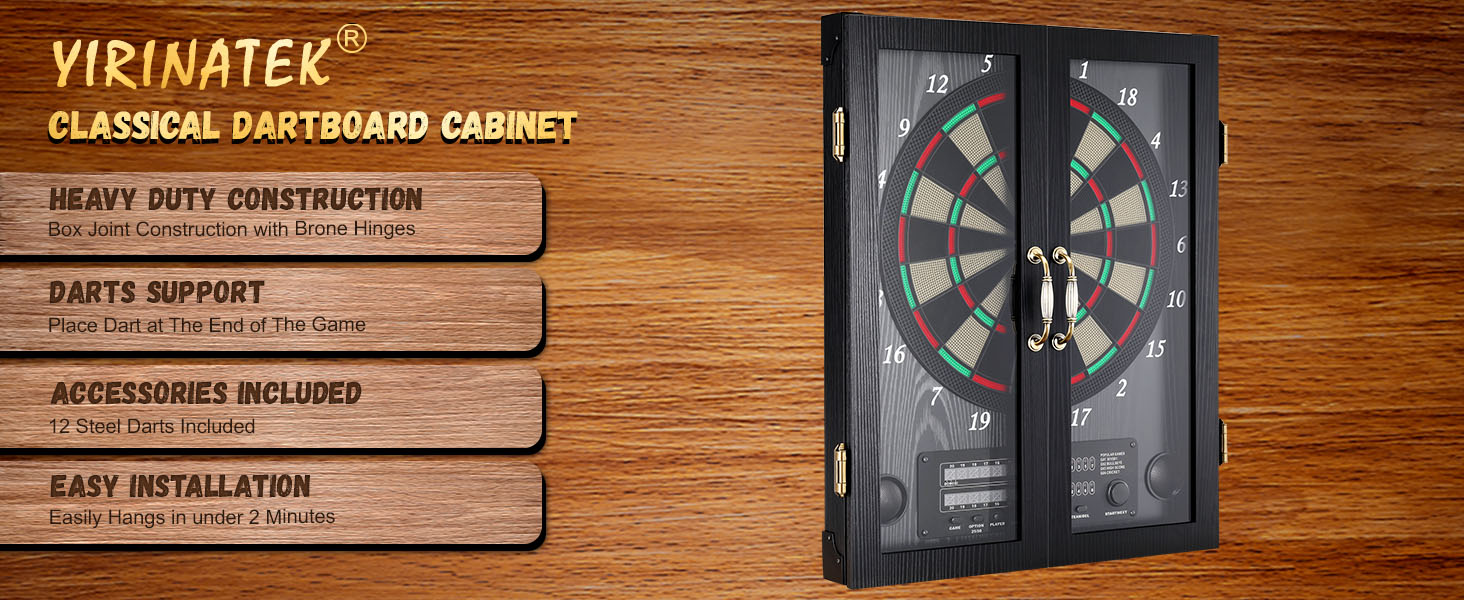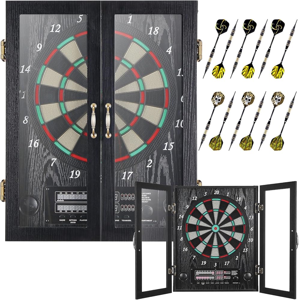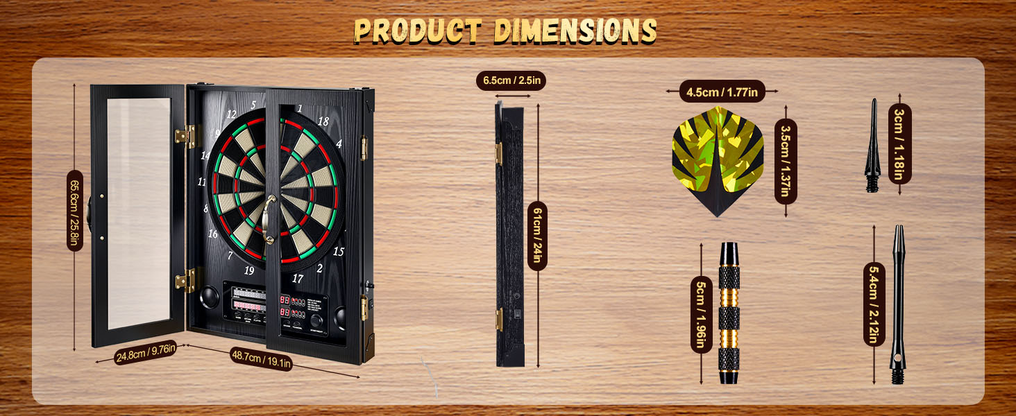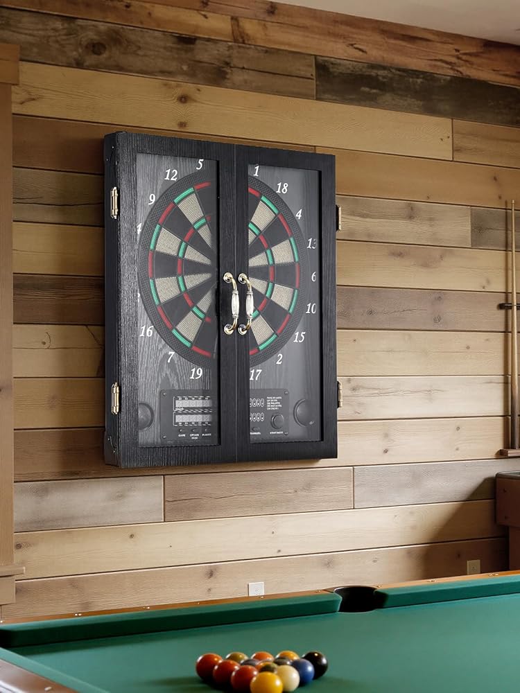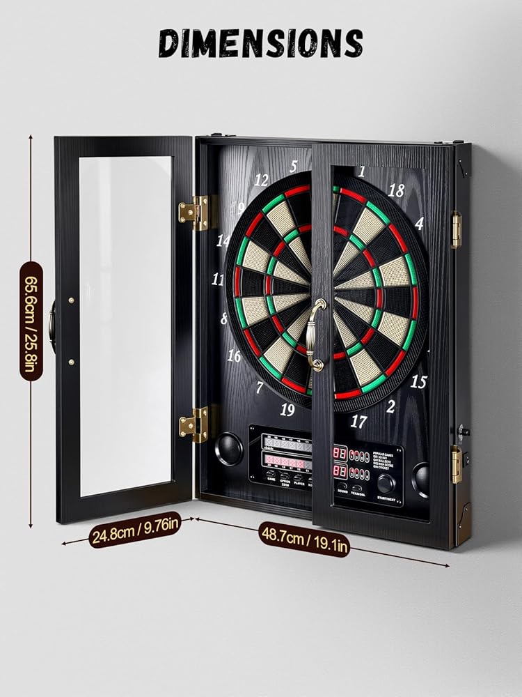 [تمتزج بسلاسة مع ديكور منزلك] تتميز لوحة رمي السهام الإلكترونية الأنيقة بتصميم أنيق وفني يكمل أي ديكور داخلي. بفضل مظهره الكلاسيكي، فإنه يتناسب بسهولة مع أي غرفة، مما يضيف لمسة من الرقي. تعمل الحرفية الممتازة في خزانة لوحة رمي السهام هذه أيضًا على رفع مستوى ديكور منزلك، مما يجعلها خيارًا رائعًا للألعاب الداخلية وإضافة جذابة لكهف الرجل أو الطابق السفلي.