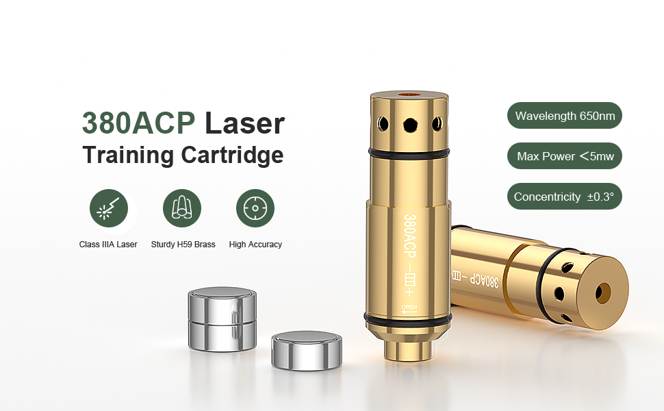 【ليزر أحمر】ليزر من الفئة IIIA، طاقة أقل من 5 ميجاوات. تحتوي خرطوشة التدريب هذه على شعاع ساطع من 15 إلى 100 ياردة ويبلغ طولها الموجي 650 نانومتر، مما يغطي كلا من التدريب الدقيق الأساسي والمتوسط المدى.