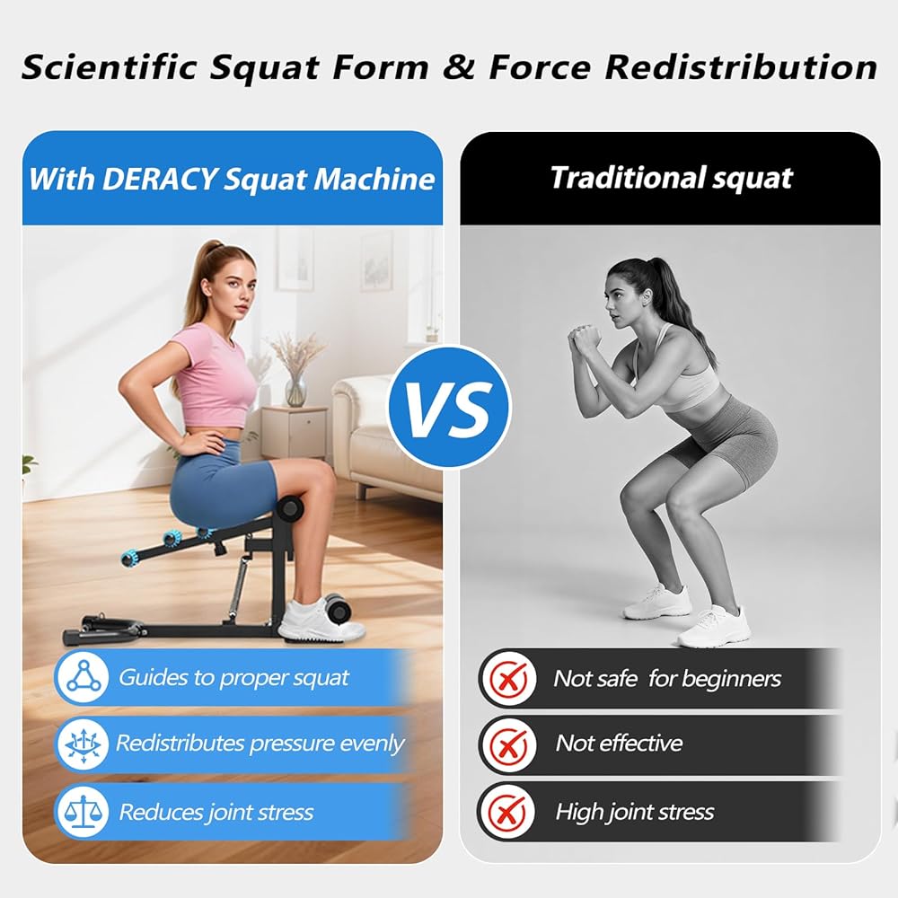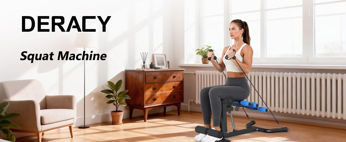 معدات تمرين الجسم بالكامل: تجمع بين آلة القرفصاء DERACY وأشرطة المقاومة. لا يستهدف فقط ساقيك وأردافك وجذعك، ولكن أيضًا ذراعيك وكتفيك وصدرك وظهرك. احصل بسهولة على تجربة لياقة بدنية شاملة في المنزل دون التبديل بين معدات متعددة.