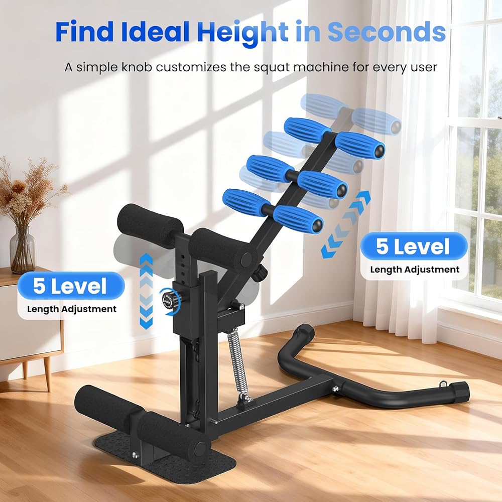 تمرين فعال لكامل الجسم: تستهدف آلة القرفصاء العميقة هذه الألوية والفخذين والعضلات الأساسية لتدريب الجسم بالكامل، وتعزيز تناغم العضلات وبناء القوة وحرق السعرات الحرارية لتشكيل جسم مشدود. معدات رياضية منزلية عملية لتدريب الجسم بالكامل والجزء السفلي منه، مما يجعل كل جلسة فعالة لتحسين اللياقة البدنية.