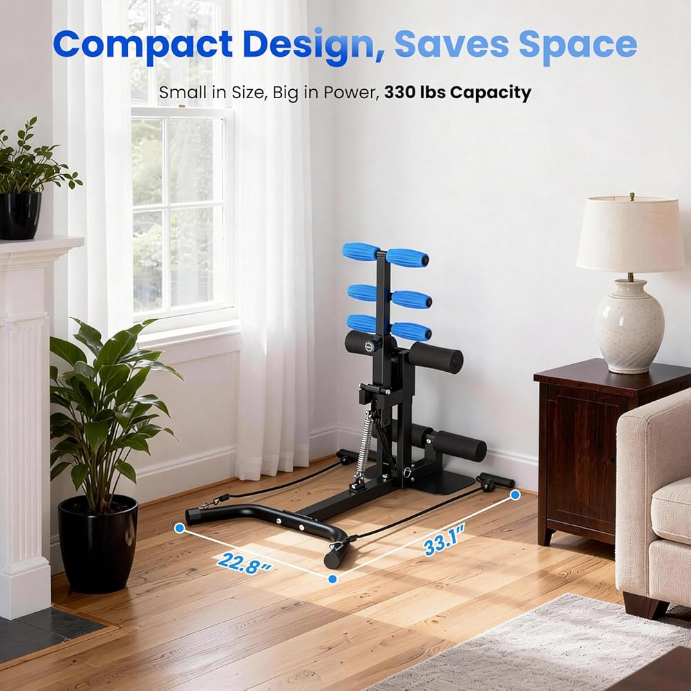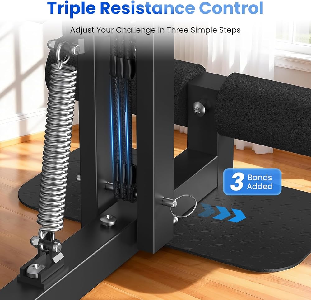 إعدادات قابلة للتعديل بالكامل مع أشرطة مقاومة مزدوجة: تتضمن التعديلات الدقيقة 3 إعدادات للمقاومة و5 للارتفاع و5 إعدادات للطول لجميع أنواع الجسم. تتيح لك أحزمة المقاومة المزدوجة المرفقة بالجهاز إضافة تدريب الذراع والظهر إلى روتينك، بينما يضمن القفل الآمن ثباتًا قويًا، مما يناسب تدريب القوة للمبتدئين مع التدريبات المتقدمة للجزء السفلي من الجسم.