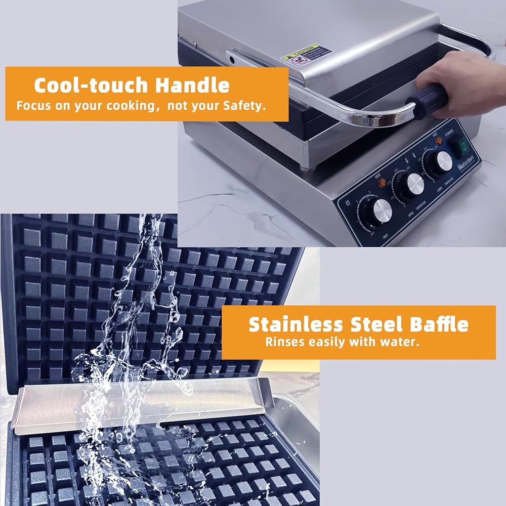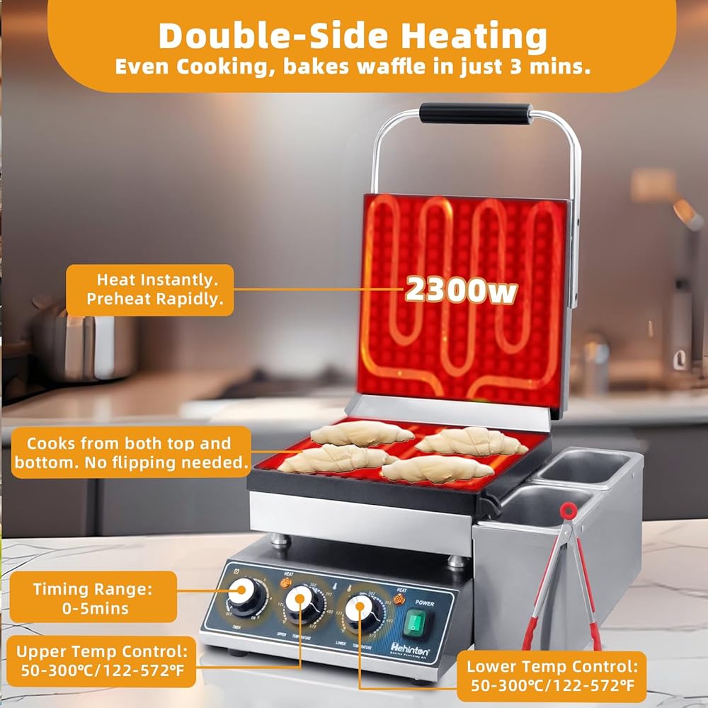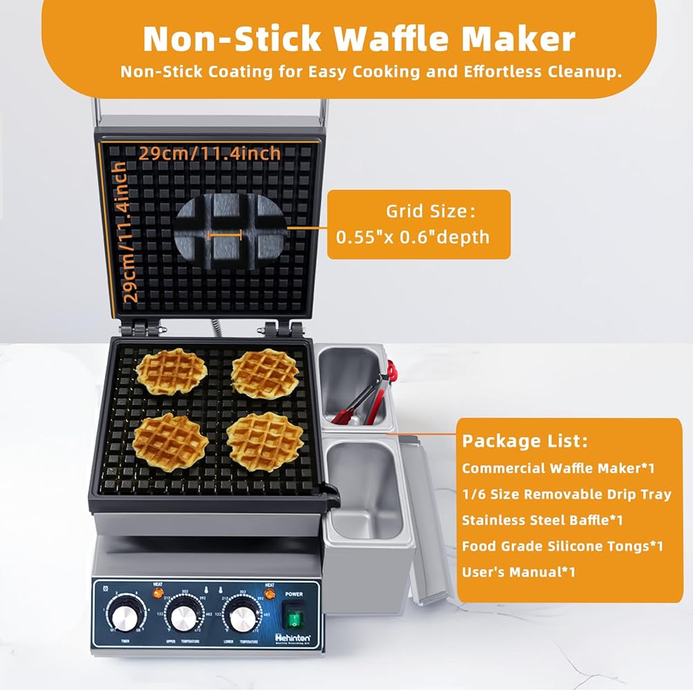 ماكينة صنع الوافل التجارية من Hehinton®، ماكينة صنع الوافل البلجيكية بقدرة 110 فولت 2300 وات مع أخاديد زيت وصينية تنقيط، هيكل من الفولاذ المقاوم للصدأ شديد التحمل، مكواة وافل غير لاصقة مثالية لمطعم المطبخ المنزلي