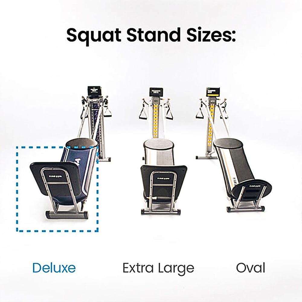 The Total Gym Deluxe Squat Stand is the newest and largest squat stand ever engineered for Total Gym home workout systems, offering unmatched support, comfort, and versatility for lower-body training. Designed with extra height, additional width, and significantly more surface area than standard stands, it allows users to perform deeper squats, wider stances, and controlled movements with superior form. Whether you're strengthening your legs, boosting your cardio with Plyo Jumps, or incorporating Pilates-inspired exercises, this stand delivers a stable and joint-friendly platform for every fitness level. This deluxe stand features more than double the surface area of the traditional rectangular squat stand and 60% more than the oval design, giving users, especially taller individuals, the freedom to position their feet safely and ergonomically. The sleek embossed grid pattern enhances traction while the bold silver logo adds a premium modern aesthetic to any Total Gym setup. Engineered exclusively by Total Gym, this attachment meets rigorous quality and safety standards and is the only certified deluxe squat stand designed for use on all Total Gym models. Installation is fast and simple: just slide the attachment into the base receptacles and you're ready for a full range of lower-body exercises. Built for reliability and smooth training performance, the Total Gym Deluxe Squat Stand measures 32"L x 19"W x 1.5"H, with a square 18.75"L x 18.75"W foot area and a lightweight yet strong 11-pound construction. From muscle strengthening and Pilates to cardio Plyometrics, this stand helps your legs look and feel their best while elevating your Total Gym workouts.