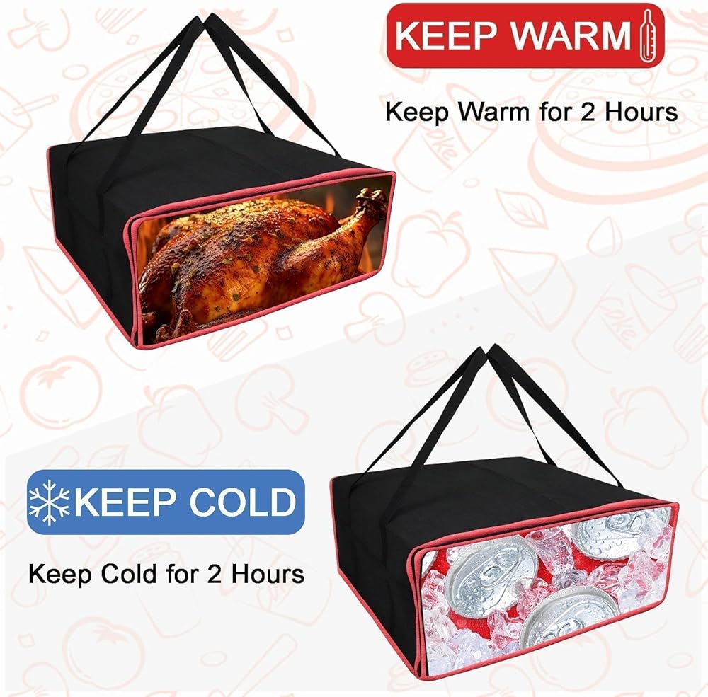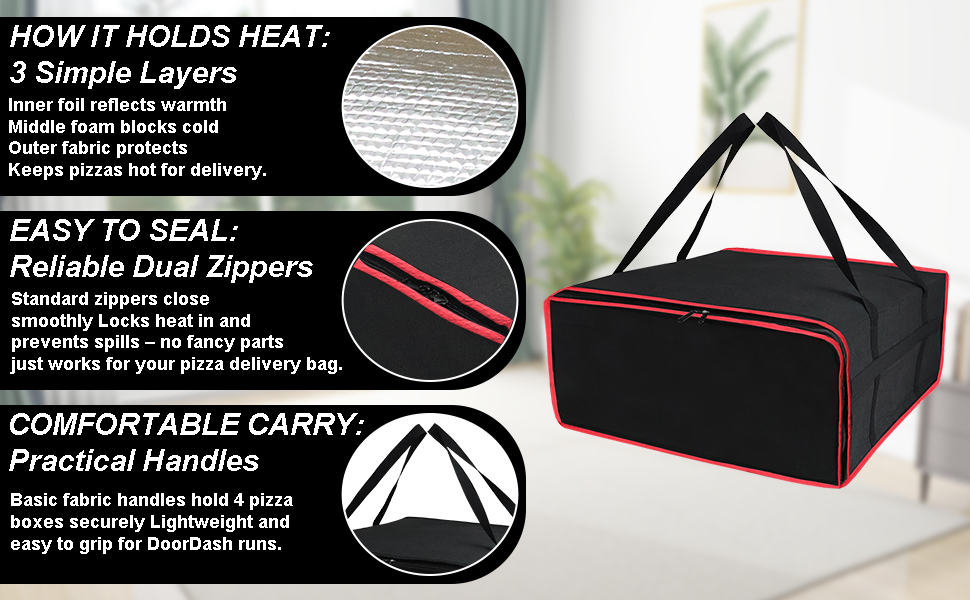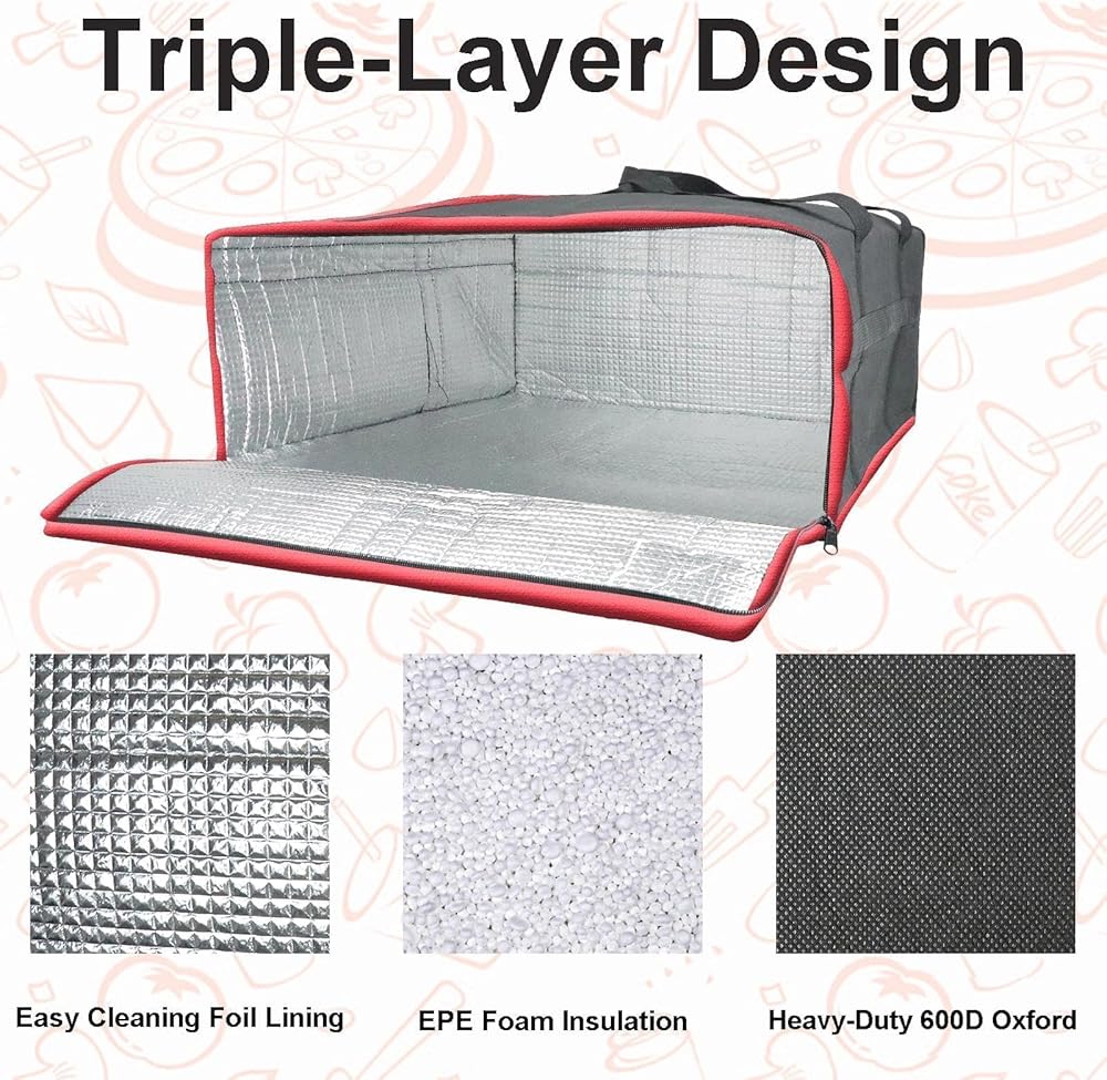 【تصميم قوي ومريح】: نسيج أكسفورد عالي التحمل مع مقابض مريحة يحمل الأحمال الثقيلة بسهولة. سحابات مزدوجة ناعمة + واقي سحاب يضمن إغلاقًا آمنًا - ضروري لمتانة حقيبة توصيل البيتزا!