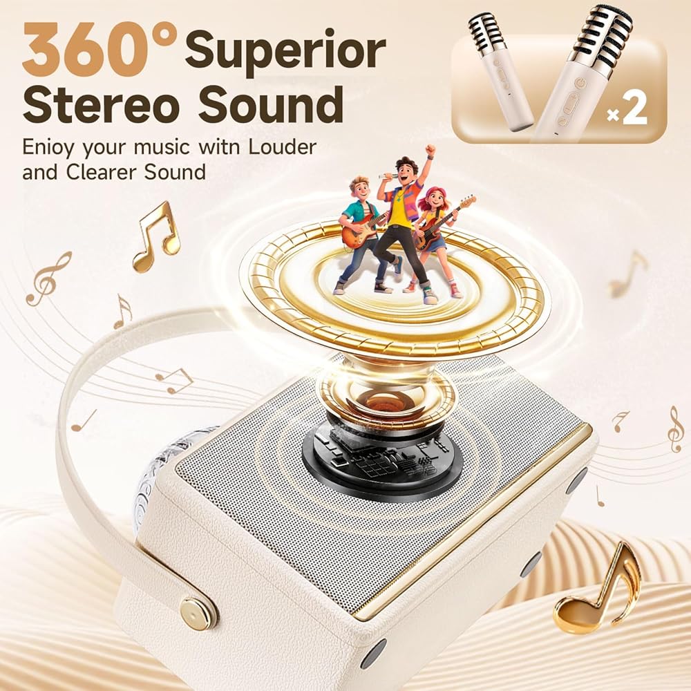 🎙️【جهاز كاريوكي للأطفال بجودة صوت لا مثيل لها】جهاز الكاريوكي للأطفال المزود بميكروفونين مجهز بمكبر صوت عالي الجودة وتقنية متقدمة توفر صوتًا قويًا ومتوازنًا جيدًا مع الحد الأدنى من التشويه لخلق تجربة صوت غامرة. تعمل آلة الكاريوكي الصغيرة للأطفال على رفع مستوى تجربة الصوت للأطفال، مما يوفر صوتًا غنيًا يملأ الغرفة يجلب الأفلام والموسيقى والألعاب إلى الحياة. تنبض الأضواء الشمالية مع إيقاع الموسيقى، مما يخلق جوًا بهيجًا. يغلف الصوت المحيطي 360 درجة لنظام الكاريوكي أطفالك بصوت ستيريو، مما يخلق تجربة كاريوكي غامرة حقًا، ويحول أي مساحة إلى مسرح موسيقي صغير. املأهم بالسعادة في أي مكان في حياتهم.