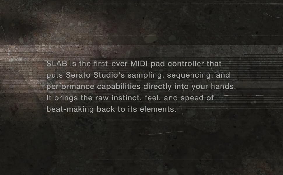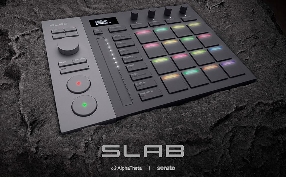 Unlock your creative potential with SLAB, the first dedicated hardware controller for Serato Studio. Designed by AlphaTheta in collaboration with Serato, SLAB delivers an intuitive, hands-on workflow for music producers and DJs. Whether you're crafting beats, remixing tracks, or performing live, SLAB puts powerful production tools at your fingertips. Featuring a streamlined layout optimized for Serato Studio, SLAB combines essential transport controls with a multifunctional dial for fast browsing and plugin manipulation—no manual MIDI mapping required. The bright OLED display and four touch-sensitive encoders provide real-time feedback for EQs, stems, and effects, while 16 velocity-sensitive pads with aftertouch and multicolor LEDs enable expressive beat-making and performance. Take control of your sound with Stems Level, allowing you to isolate and adjust vocals, drums, bass, and melody directly from the hardware. SLAB also supports Serato Sample, Serato DJ Pro, and other DAWs via versatile MIDI mode, making it the perfect companion for any studio or stage setup. Compact and portable—smaller than letter size—SLAB features a sleek two-tone design and includes a matching USB-C cable with straight and L-shaped connectors for neat, flexible setups. From home studios to live performances, SLAB is your gateway to a new level of creative freedom.