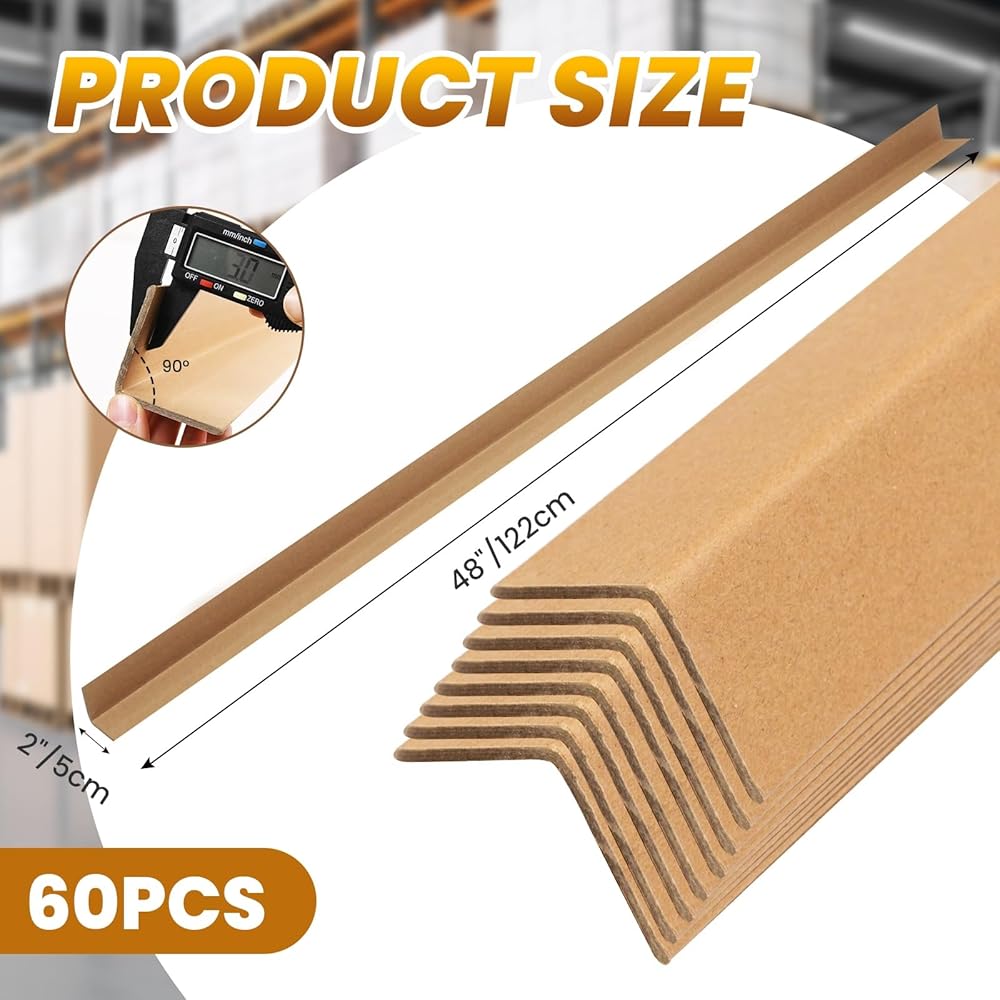【مواصفات واقيات الحواف من الورق المقوى】- الكمية: عبوة مكونة من 60 قطعة؛ المواد: كرتون صلب؛ حجم المنتج: 2 بوصة × 2 بوصة × 48 بوصة، السُمك: 0.12 بوصة / 0.3 سم؛ اللون: بني؛ يمكن لواقيات الزوايا المصنوعة من الورق المقوى على شكل حرف V أن تمنع إزاحة العبوة وتقليل الضرر أثناء النقل أو التخزين.