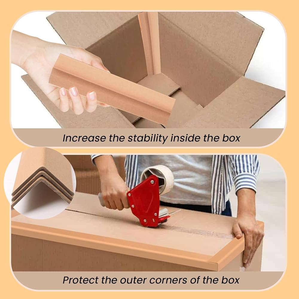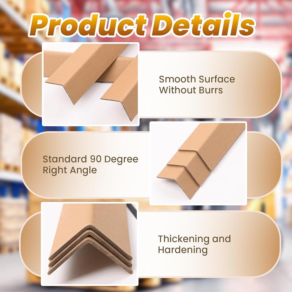 【سهلة التركيب】- تتميز واقيات الزوايا المصنوعة من الورق المقوى بسهولة الاستخدام ويمكن ربطها بسهولة بالزوايا باستخدام طبقة تغليف أو شريط. نظرًا لطول منتجنا الذي يصل إلى 48 بوصة، فهو مناسب لمعظم أحجام البضائع؛ إذا كان المنتج الذي تقوم بشحنه صغيرًا، فيمكنك أيضًا قصه مباشرة ليتناسب مع حجم منتجك؛ إذا كانت المنتجات المطلوب نقلها كبيرة، فيمكن أيضًا ربطها معًا للاستخدام.