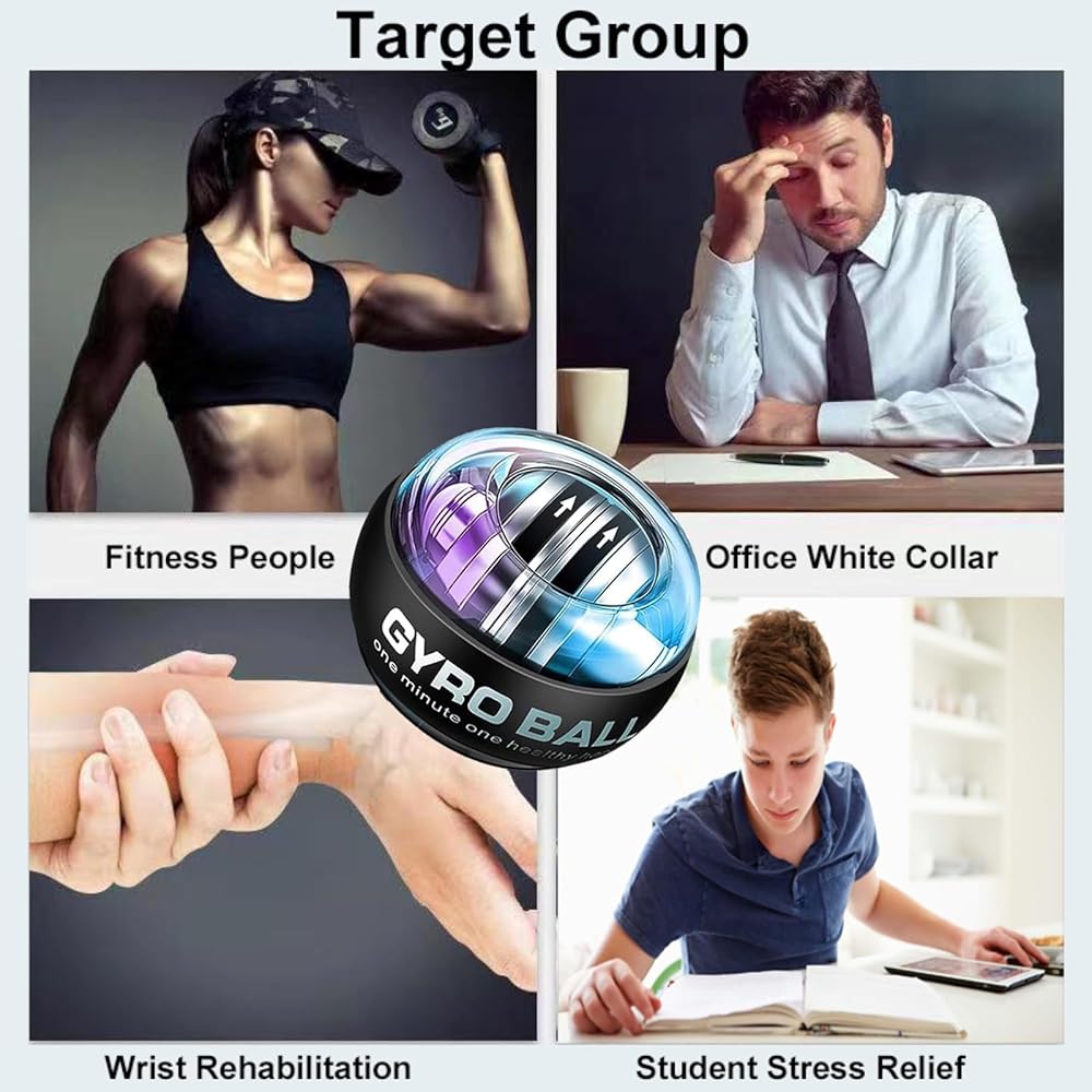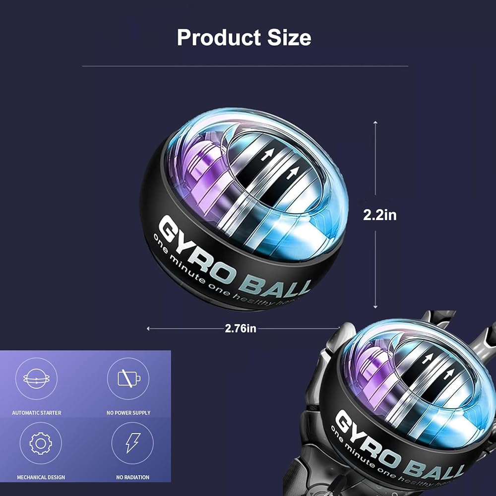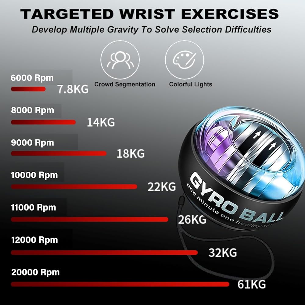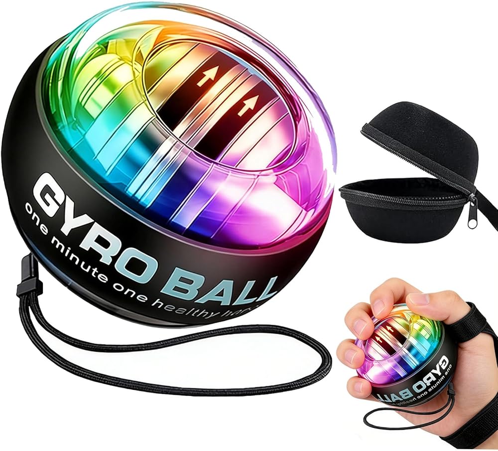 Novel Design:The gyro ball wrist exerciser With 6 dynamic light modes that respond to your movement intensity, the colored LED lights inside will light up, which increases the fun and kills time, and the muscles are also exercised. Curaball hand trainer has a built-in LCD counter to keep you motivated and monitor your progress. Track your rotation speed, ranging from 2,000 to 20,000 Rpm