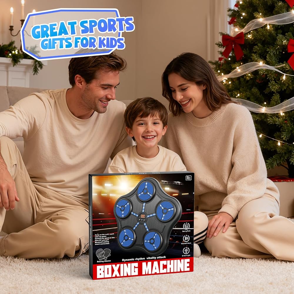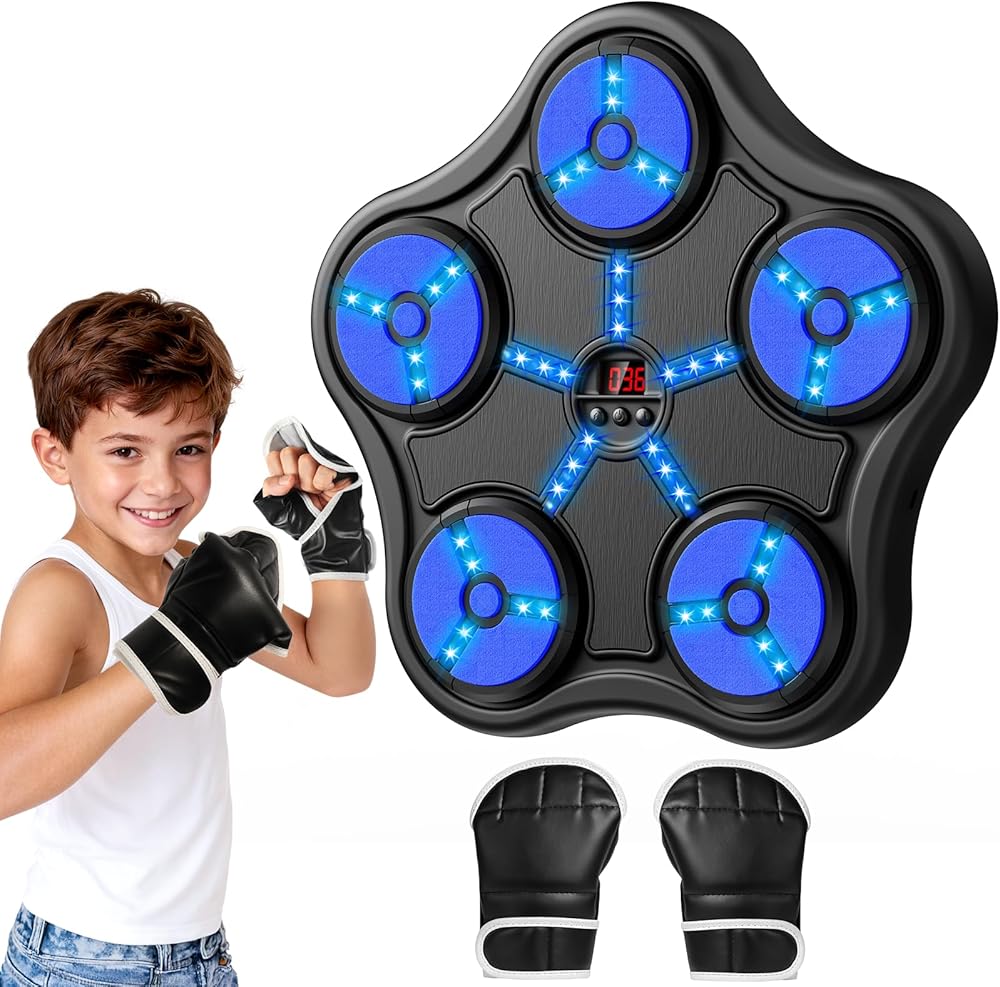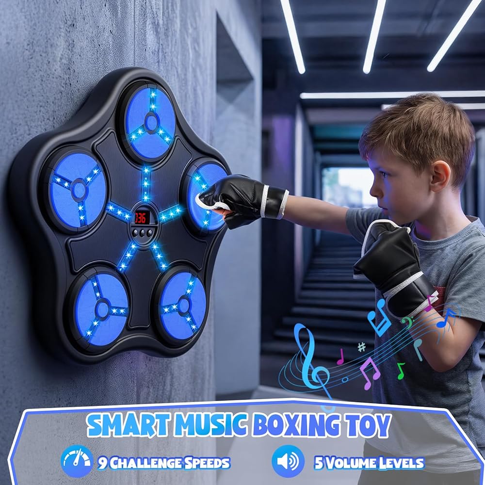 ألعاب آلة الملاكمة للأولاد بعمر 5 6 7 8 9 10 11 12 عامًا، حقيبة ملاكمة بلوتوث ذكية مثبتة على الحائط، معدات تدريب الملاكمة الموسيقية مع قفاز الملاكمة، هدايا عيد ميلاد للأطفال من سن 5 إلى 12 عامًا