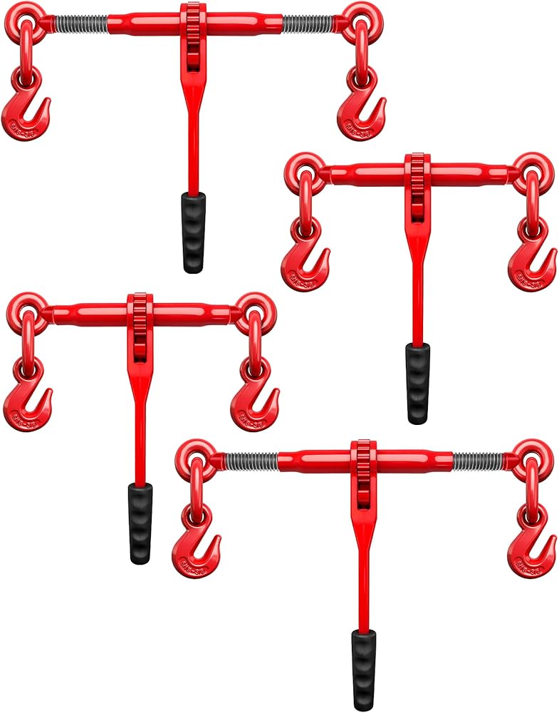 مجلدات سلسلة السقاطة - تناسب سلسلة 5/16 بوصة و3/8 بوصة، بوزن 5400 رطل، طول قابل للتعديل للنقل والقطر الآمن، 4 عبوات