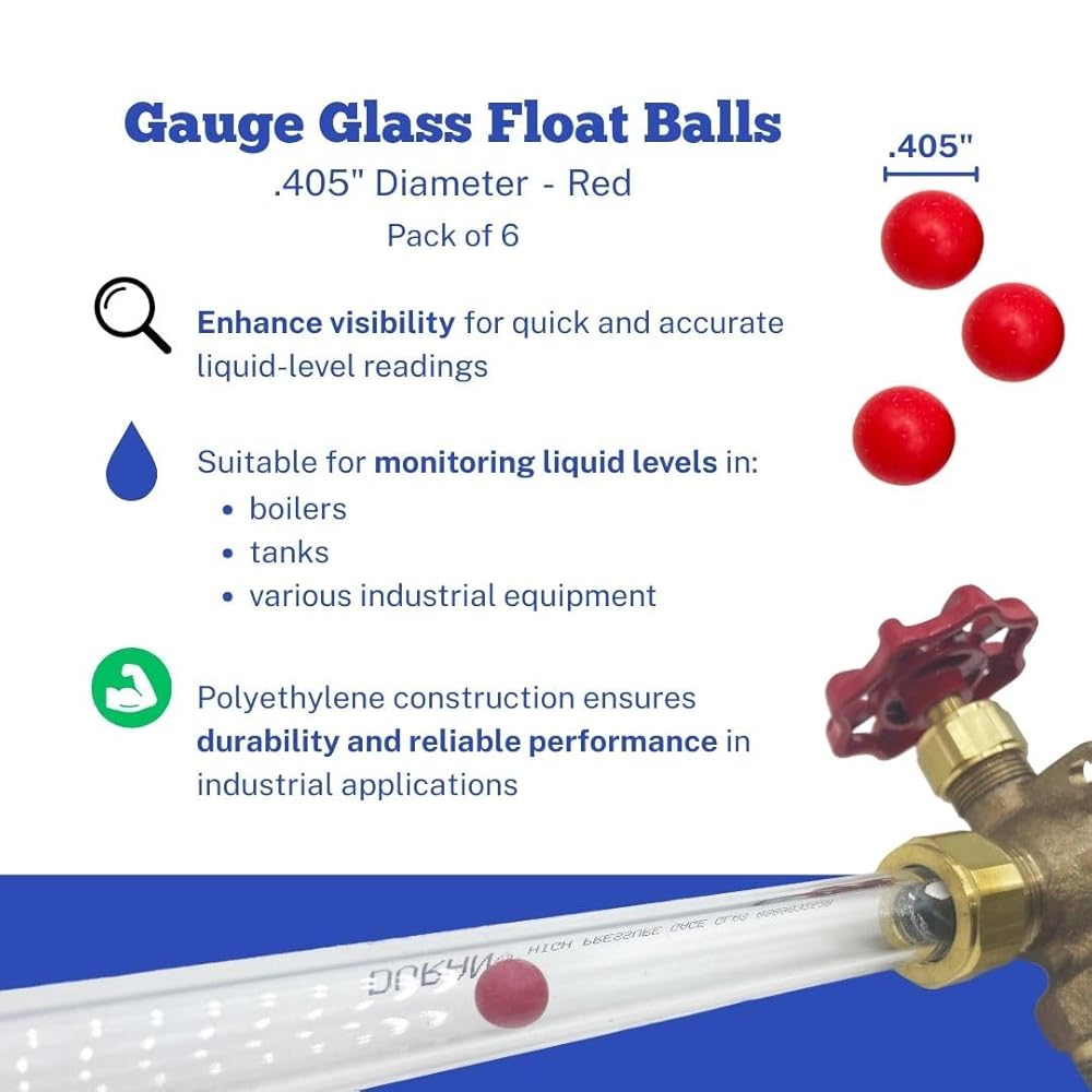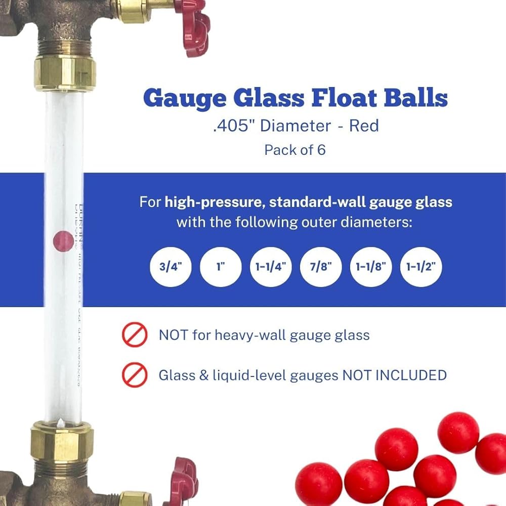 كرات زجاجية عائمة بقطر .405 بوصة | 6 عبوات | كرات رؤية غلاية حمراء للزجاج مقاس 3/4 بوصة | لأجهزة قياس مستوى السائل