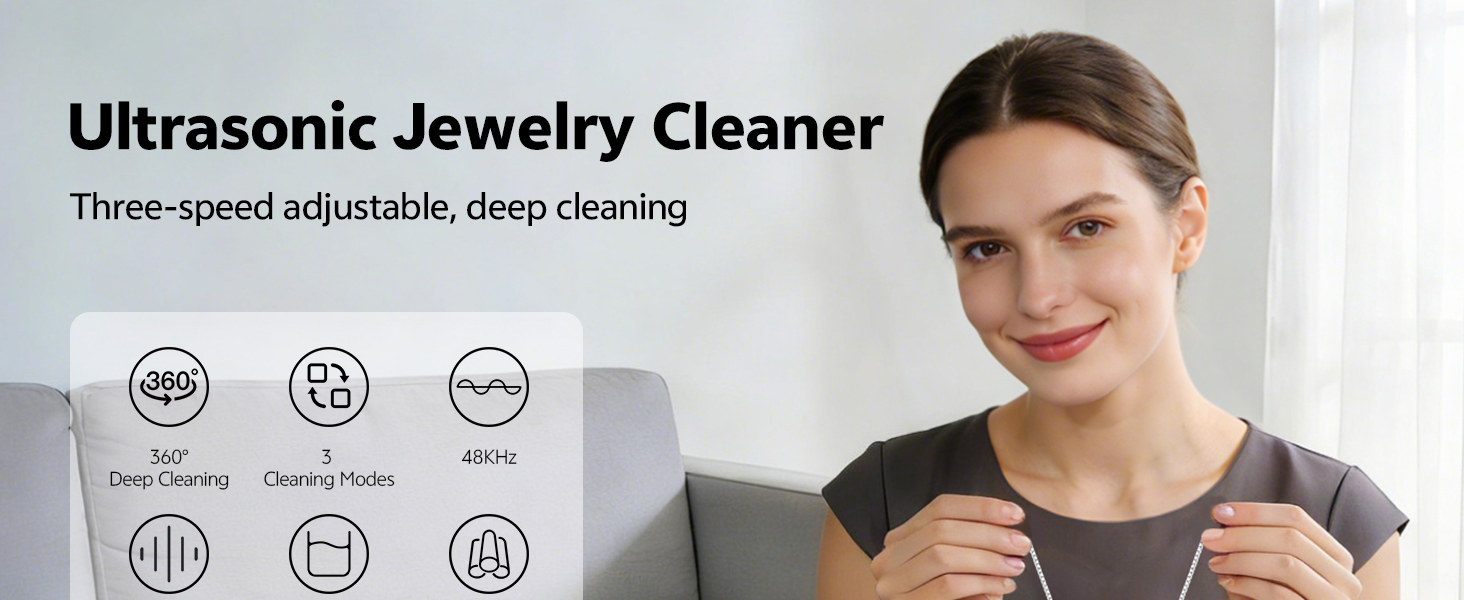 • منظف ​​المجوهرات بالموجات فوق الصوتية الاحترافي: يمكن للمنظف بالموجات فوق الصوتية أن يوفر تنظيفًا عميقًا، فقط أضف ماء الصنبور واضغط على زر التشغيل لتنظيف المجوهرات المتسخة في دقائق قليلة دون إزالة البقع (إضافة سائل التنظيف بالموجات فوق الصوتية يمكن أن يحقق تأثير تنظيف أفضل).
