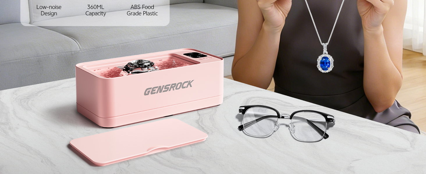 آلة تنظيف المجوهرات بالموجات فوق الصوتية من GENGROCK، منظف صوتي 48 كيلو هرتز، 3 أوضاع للتنظيف العميق، خزان طعام بسعة 360 مل، هادئ 45 ديسيبل، للمجوهرات والخواتم والذهب والفضة والنظارات وأطقم الأسنان (وردي) in Kuwait