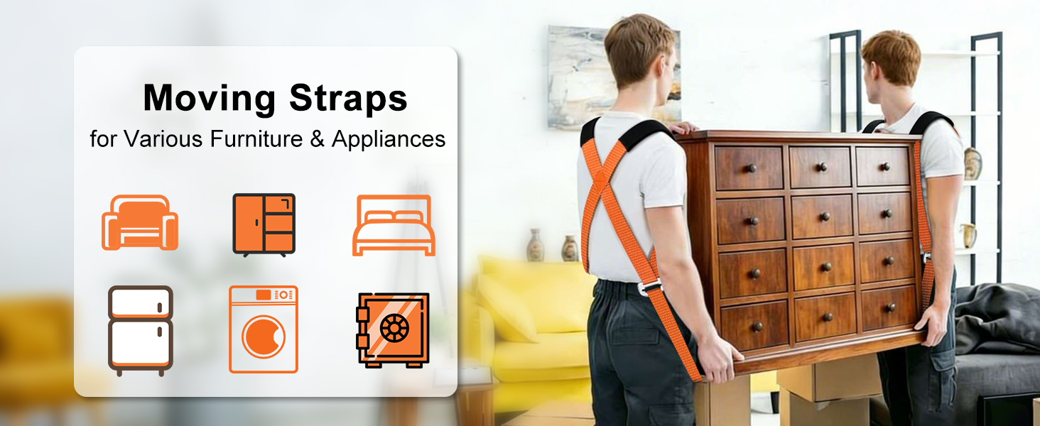 💪【مريحة في الاستخدام】 توفر هذه الأشرطة المتحركة ونظام الرفع والتحريك لشخصين استخدامين مرنين: الساعد أو الكتف. قم بتثبيت الحزام المركزي المتوازي أو على شكل X أسفل الحمل لمنع الأشرطة المتحركة للأثاث من التحرك أو الانزلاق، مما يضمن التوازن الأمثل. بالنسبة للأجهزة الثقيلة ذات الحجم الكبير، قم بإقران أحزمة الكتف بأشرطة متحركة متينة للرفع؛ بالنسبة للأشياء خفيفة الوزن/غير المنتظمة، ما عليك سوى الإمساك بحزام الكتف باليد.