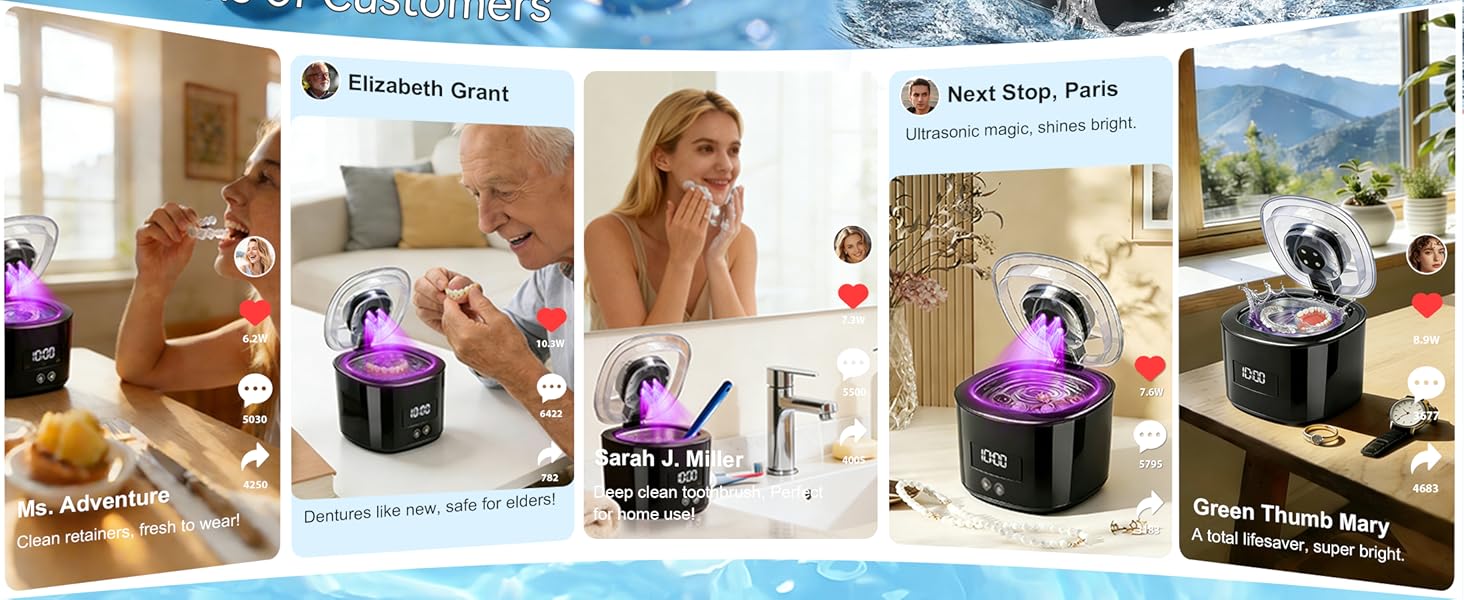 • 【محرك ألماني مطور من الدرجة الأولى】تعتمد آلة تنظيف المثبات محركًا ألمانيًا احترافيًا للبحث والتطوير لمدة 16 عامًا مع 5000 دورة في الدقيقة، +50% تعزيز الطاقة و +50% عمر مقارنة بمحركات الألومنيوم الأساسية العادية. مدمج بشكل مثالي مع تقنية الموجات فوق الصوتية، فهو يوفر اهتزازًا مستقرًا وقويًا، مما يضمن التنظيف العميق لشقوق طقم الأسنان دون أي ضرر. موثوق به من قبل أكثر من 7,835,000 مستخدم عالمي وتم التحقق من صحته من خلال أكثر من 2000 اختبار معملي، وأكثر من 60 شهادة موثوقة.