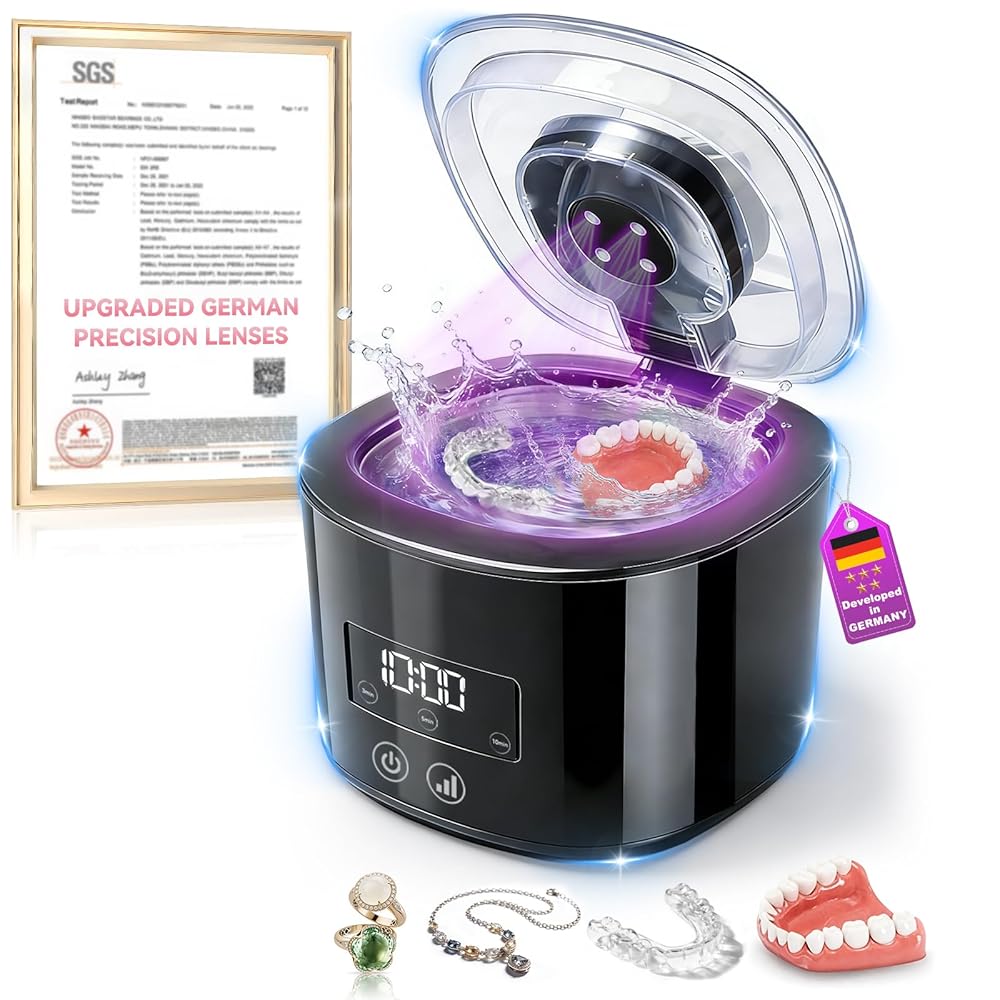 5.0 منظف التجنيب بالموجات فوق الصوتية المحدثة 【محرك ألماني Top1 】 【تقنية الموجات فوق الصوتية والمزدوجة 50 كيلو هرتز المعتمدة من SGS 】 【شريحة ذكية 4.0 】 【قابلة لإعادة الشحن 】 لأطقم الأسنان والأقواس والحرس الليلي والمصفف وفرشاة الأسنان والمجوهرات in Kuwait