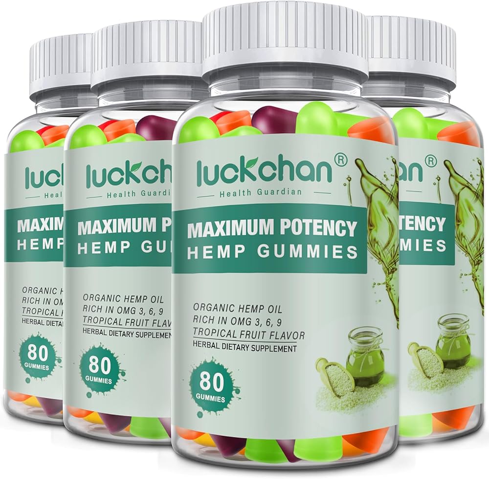 (4 عبوات) صمغ القنب عالي الفعالية للنوم والألم والقلق - مضغ زيت القنب العضوي النقي ذو القوة الإضافية - 100% صمغ الدب الطبيعي للبالغين
